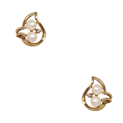 14K Gold, Pearl, & Diamond Accent Stud Earrings