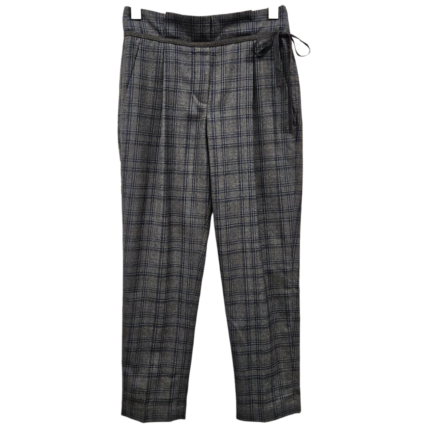 Brunello Cucinelli Plaid Wool Trousers - Size 2/XS