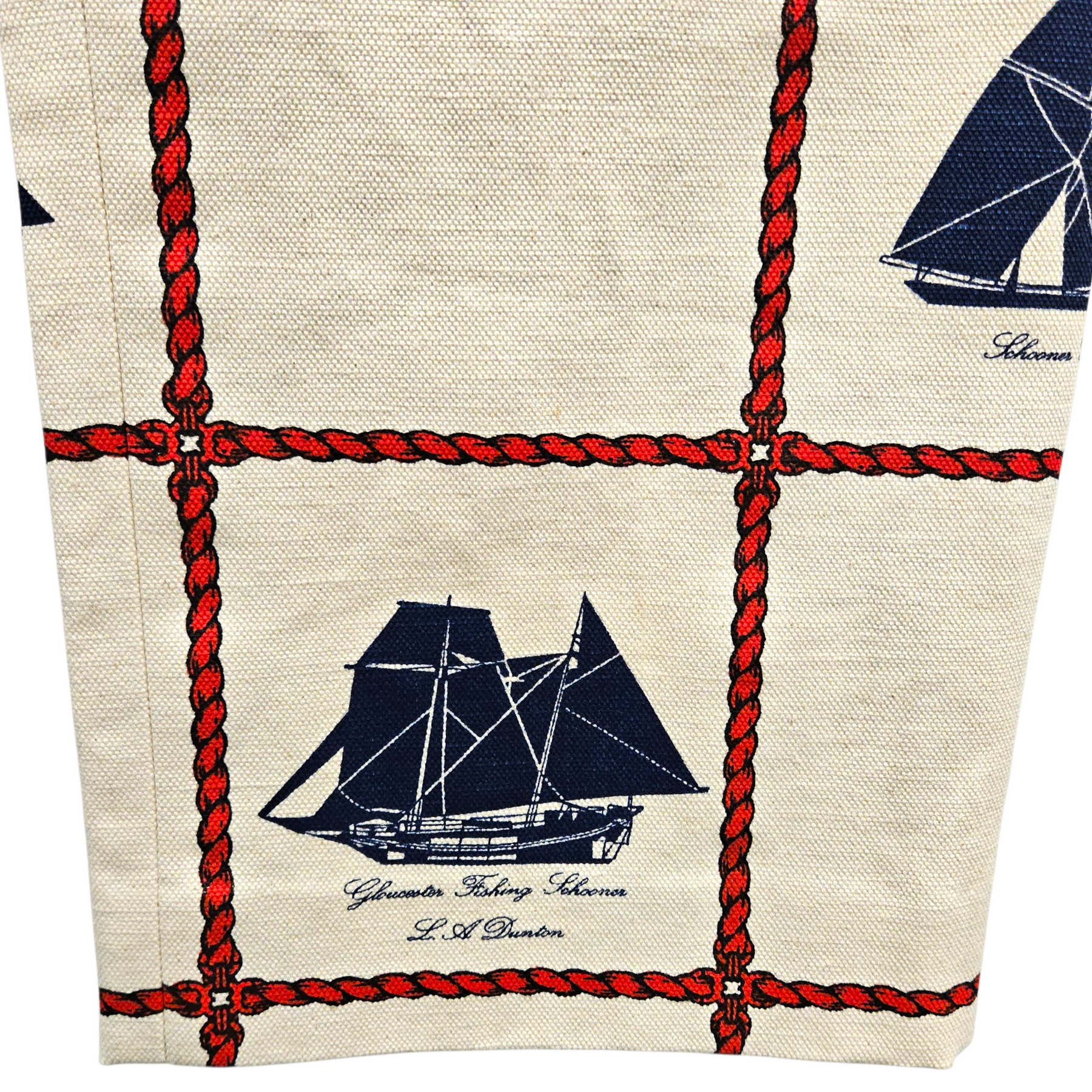 Materials: Light-beige, navy, & red 68% cotton, 32% linen.