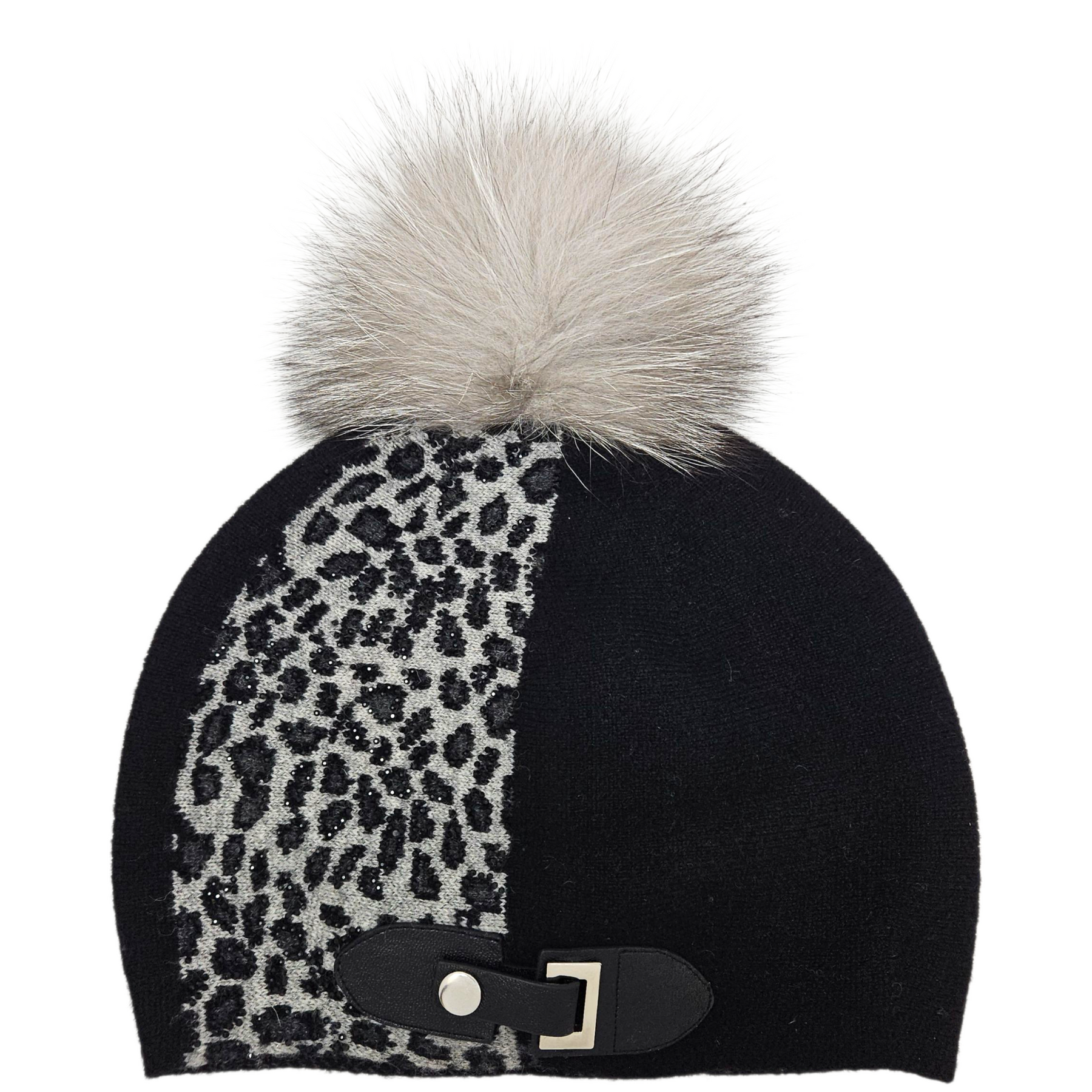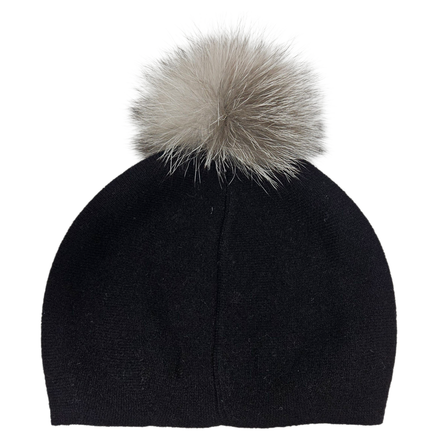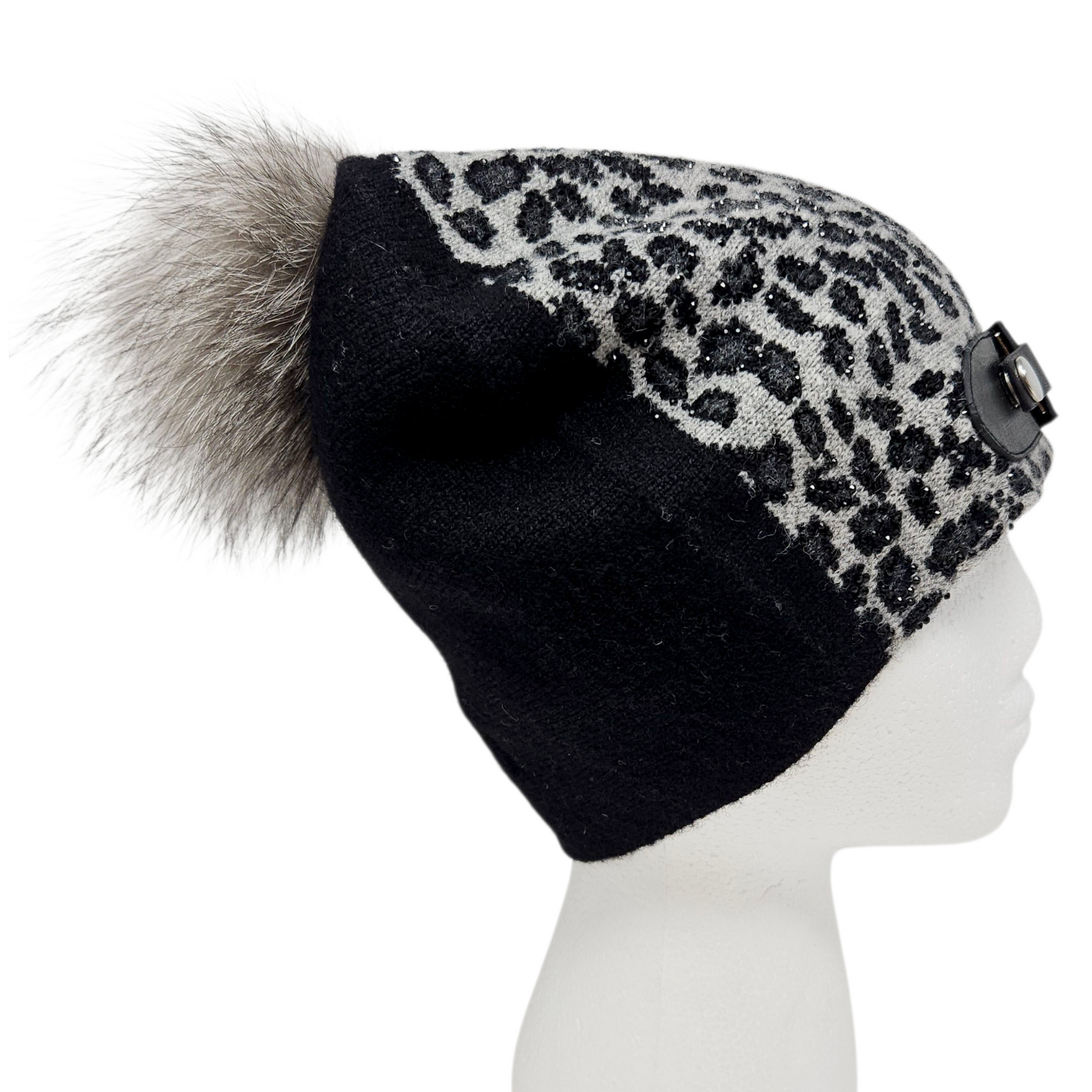Materials: Black & grey 100% wool, with fox-fur pom.