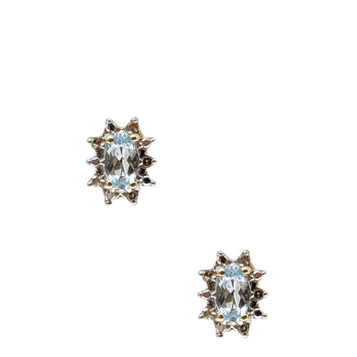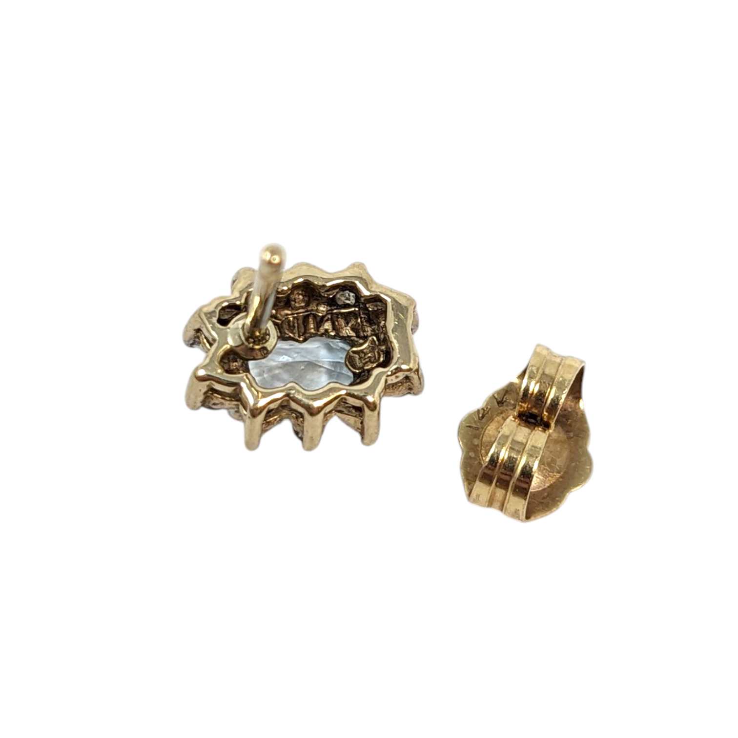 14K Gold Aquamarine Diamond Accent Stud Earrings.