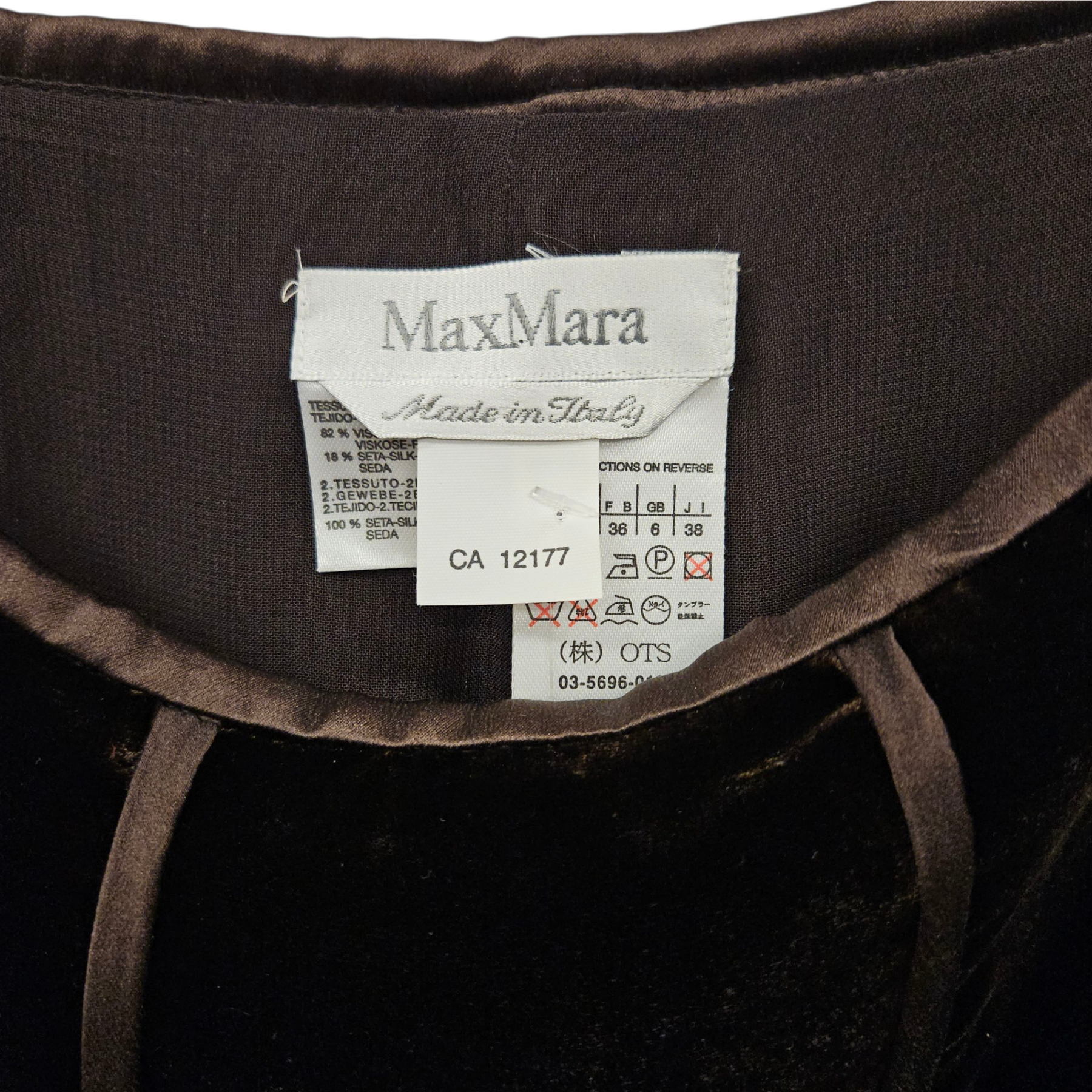 Materials: Brown 82% viscose, 18% silk.