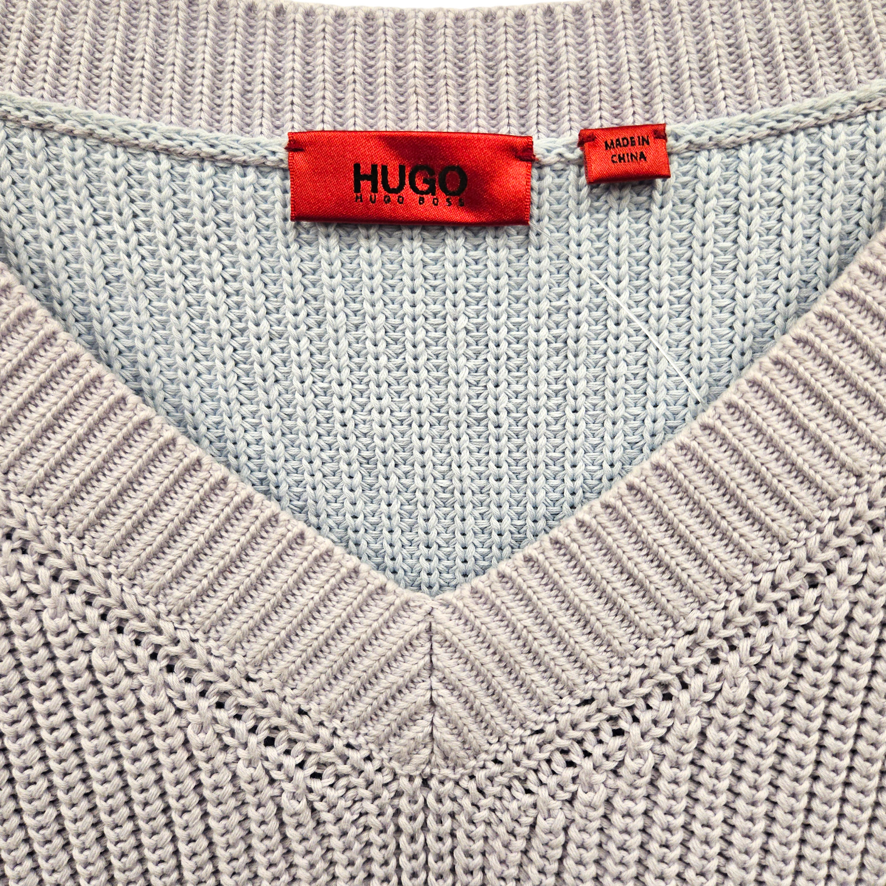 - Chunky ribbed knit.