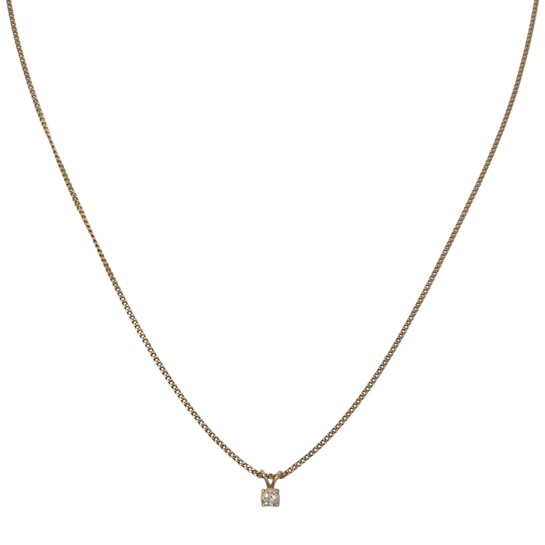Materials: 14K yellow gold with approx. 0.25 c.t.w. solitaire diamond pendant with 10K yellow gold chain.