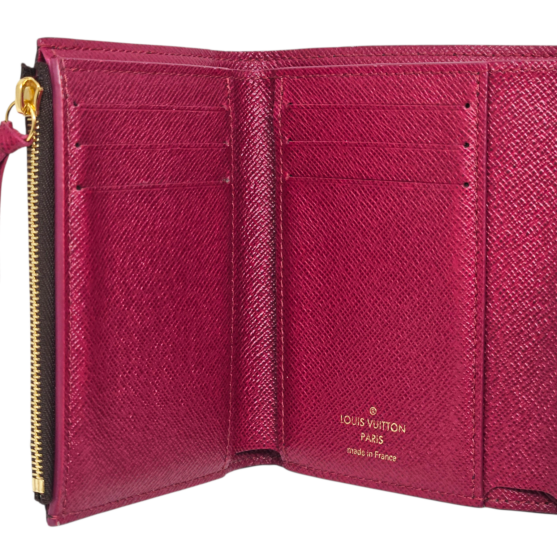 Materials: Brown monogram coated canvas with fuschia interior & gold-tone hardware.