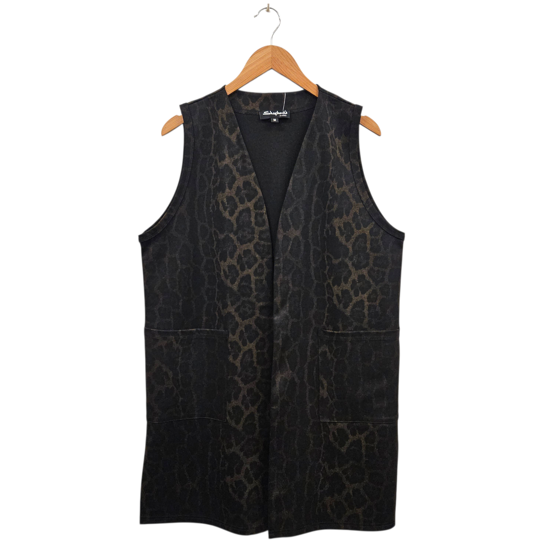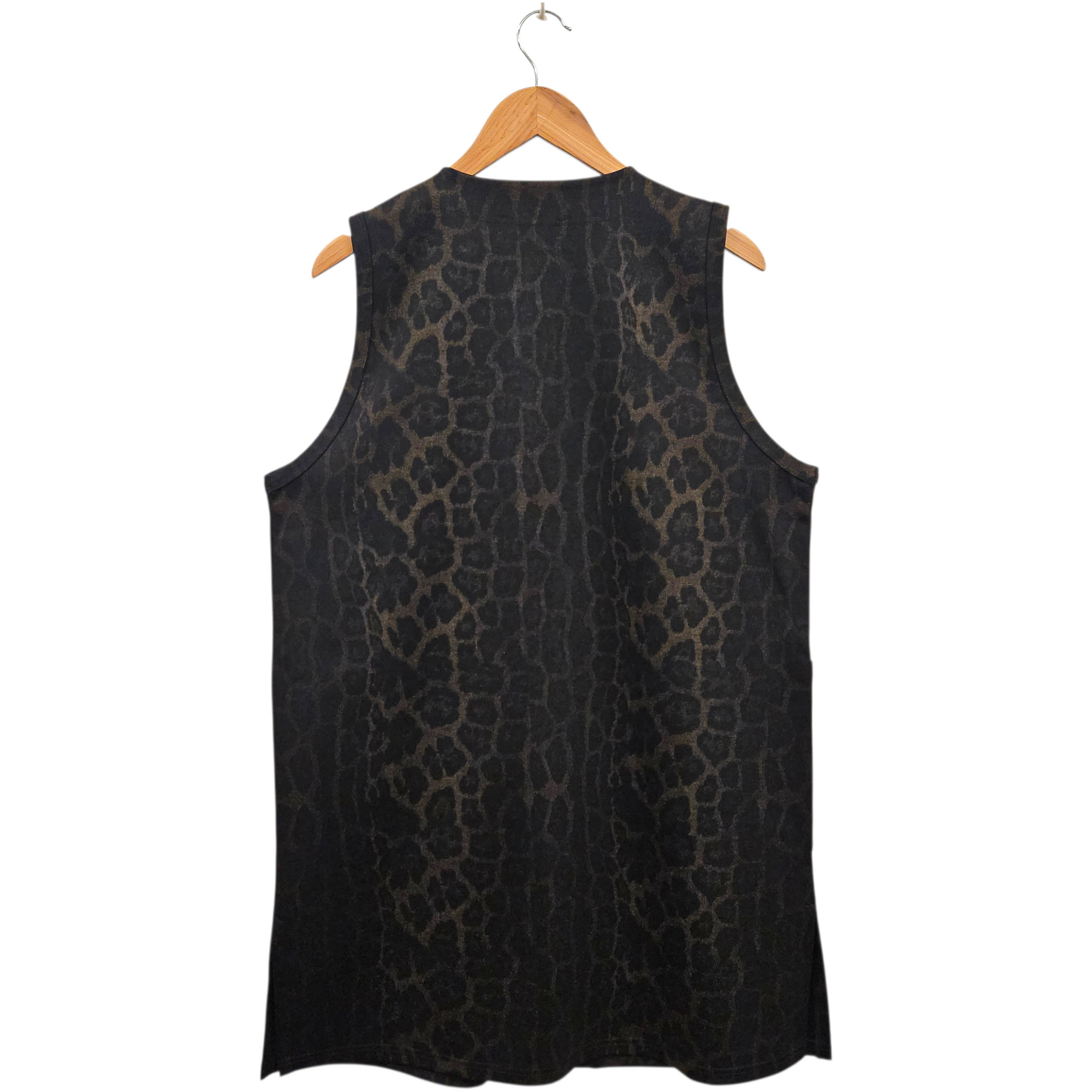 Approximate measurements: 44" bust 44" waist, 47" hips, 11" armhole drop, 3.5" shoulders, 34" total length.