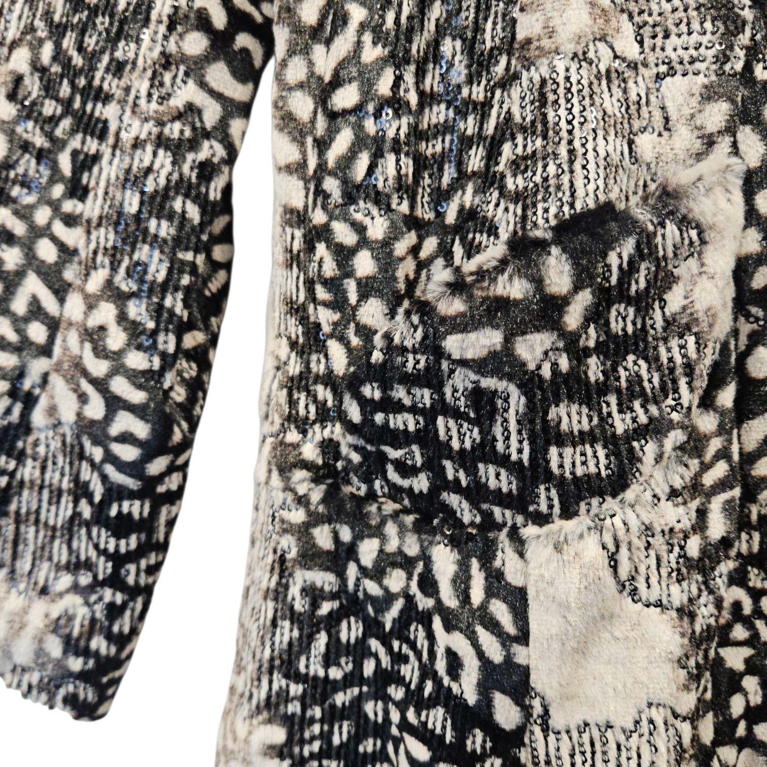Simon Chang Long Faux-Fur Sequin Coat - Size 6/Small