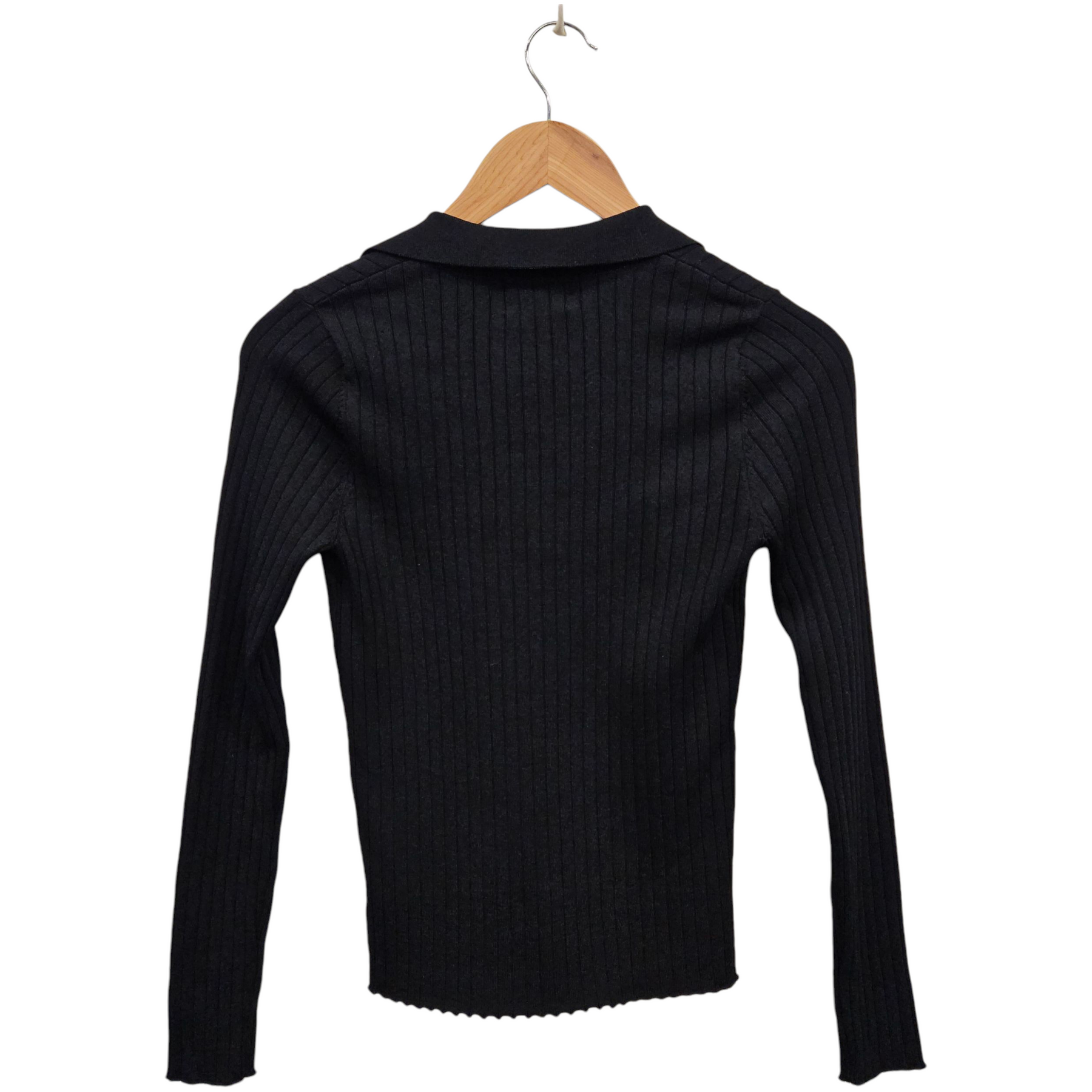 Amanda Maria Ribbed Knit Polo Top - Size Small/XS