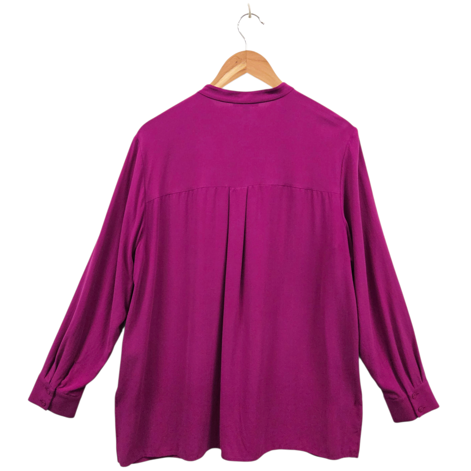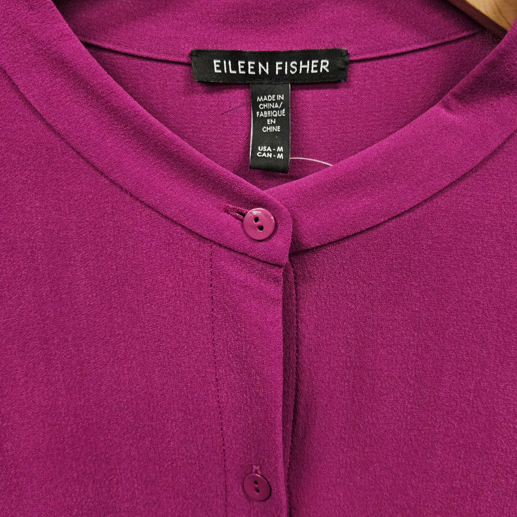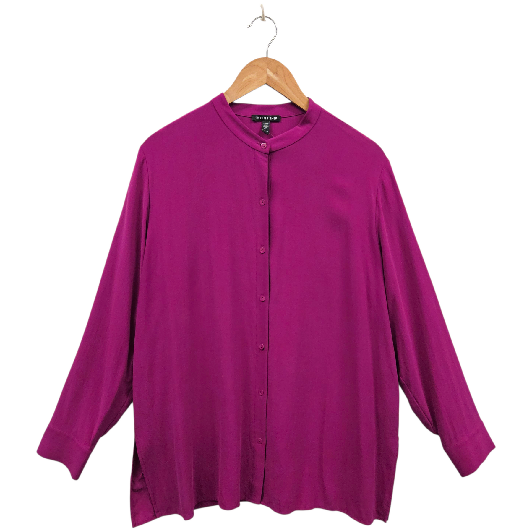 Regular price $85.00Eileen Fisher Silk Georgette Crepe Band Collar Shirt, size medium.