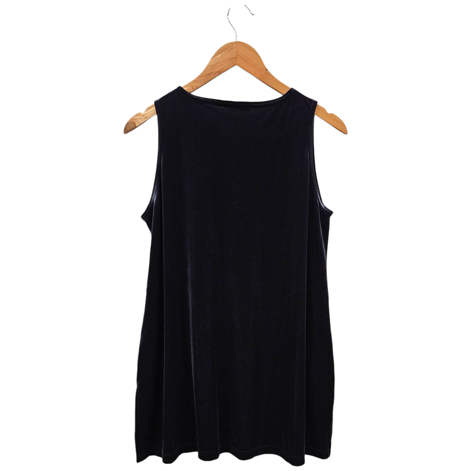 Approximate measurements: 38" bust, 41" waist, 47" bottom hem, 9" armhole drop, 2.25" shoulders, 27.5" total length.