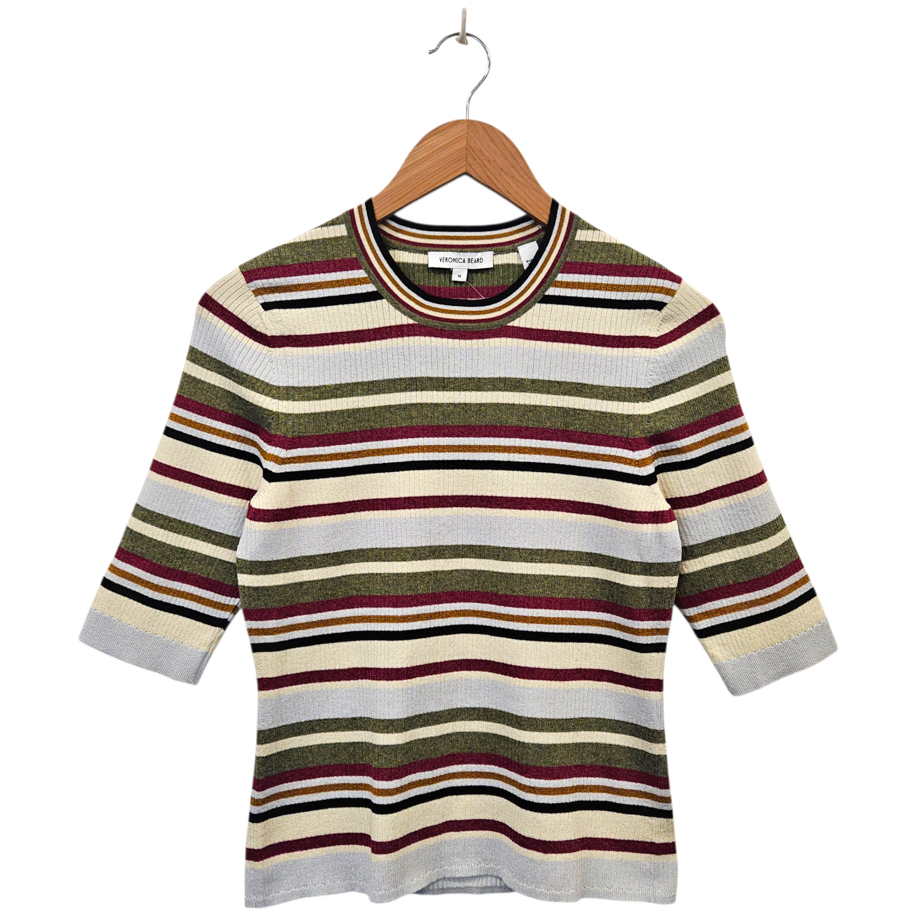 Veronica Beard "Kavya" Striped Ribbed Top - Size Medium