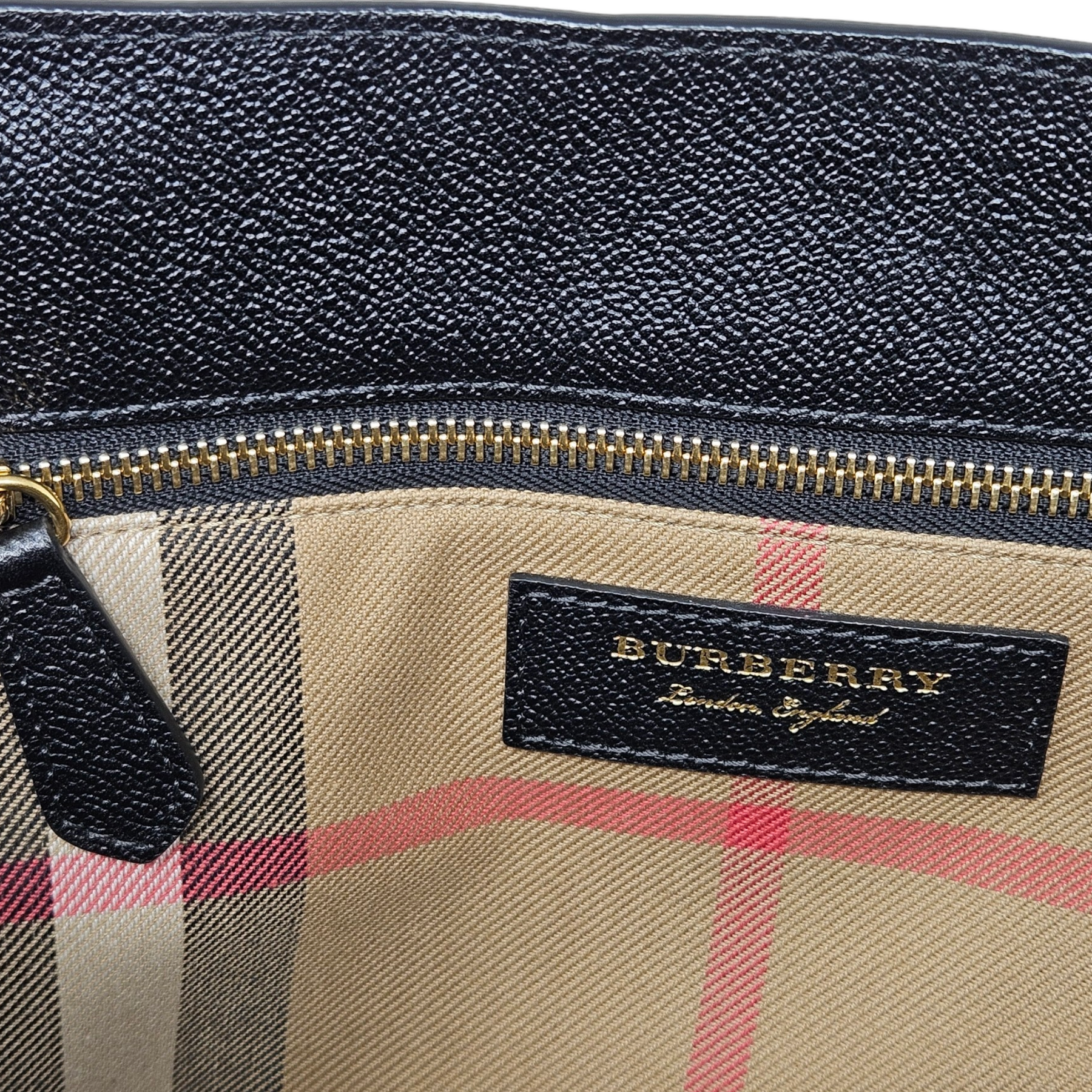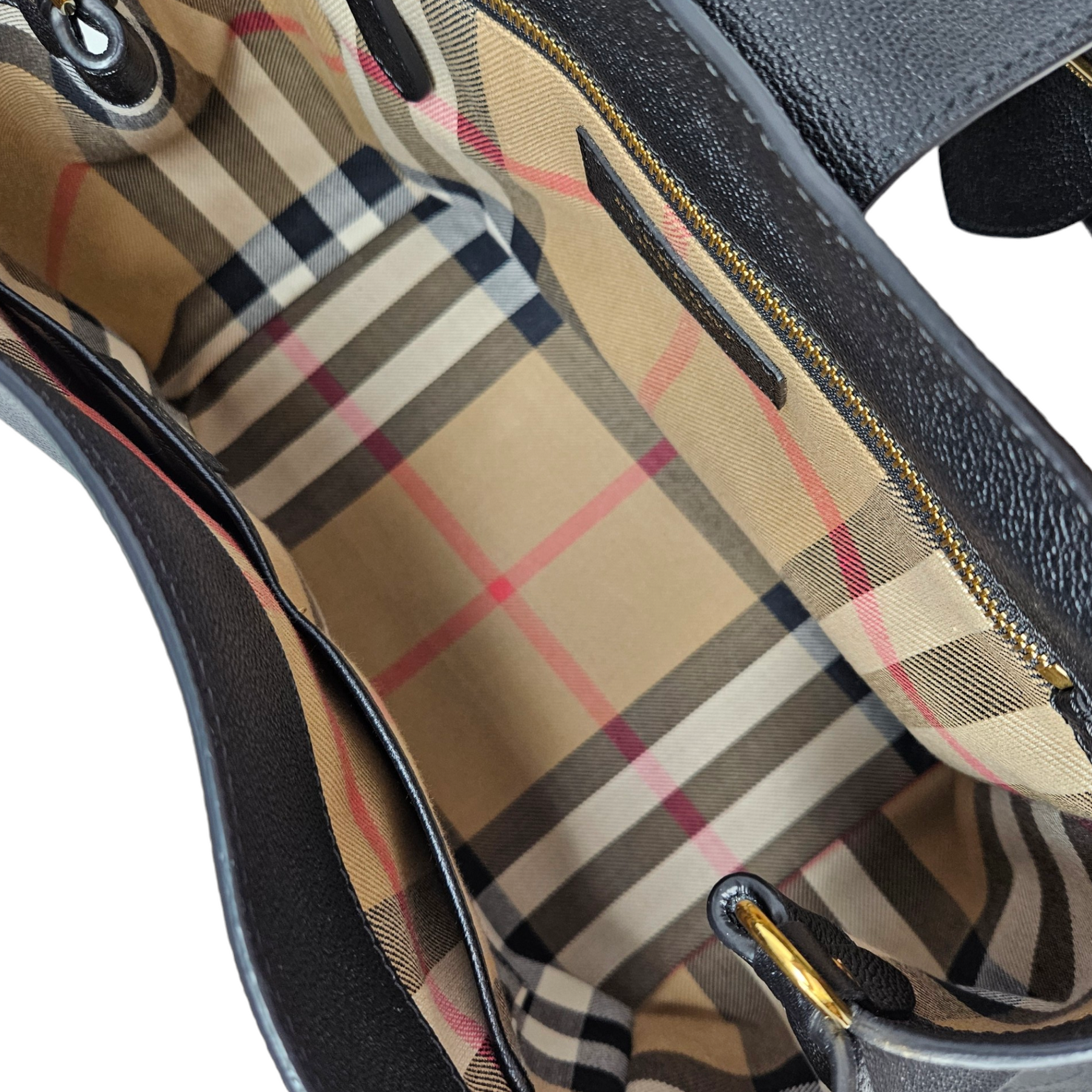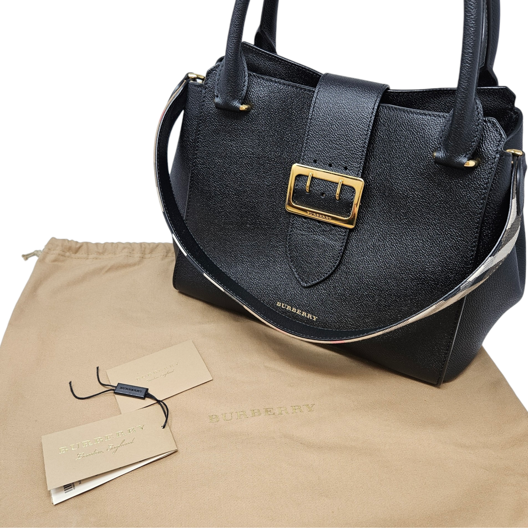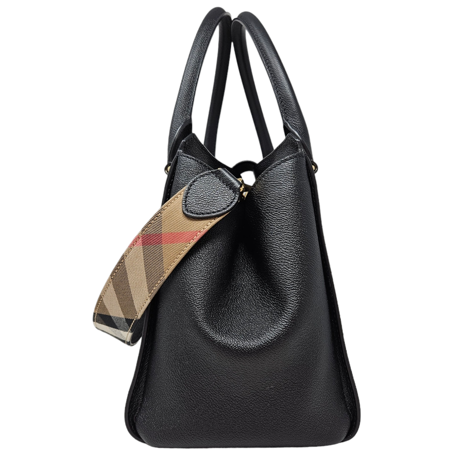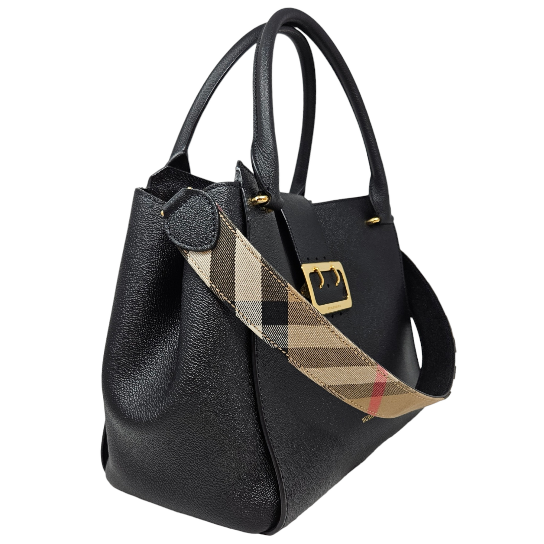 - Removable leather & Haymarket check shoulder strap with an 11.5" drop.