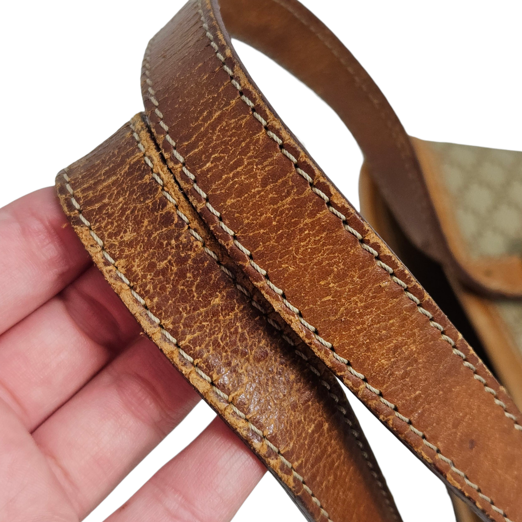 Good vintage condition, general wear including dryness on straps, and patina & marks on leather trim.