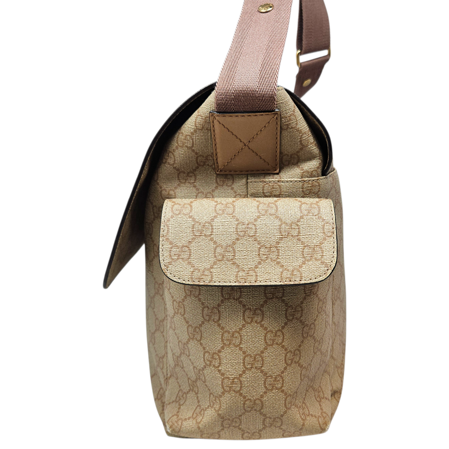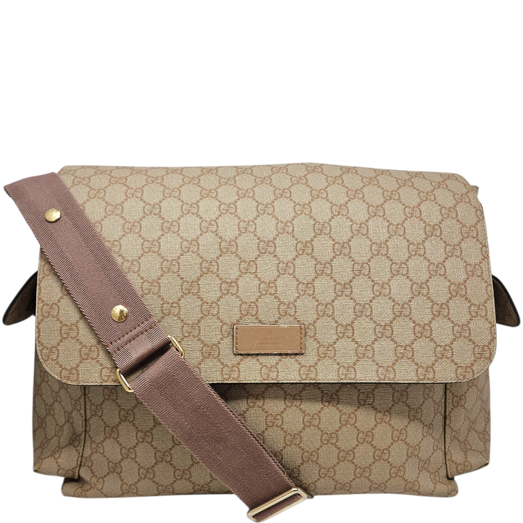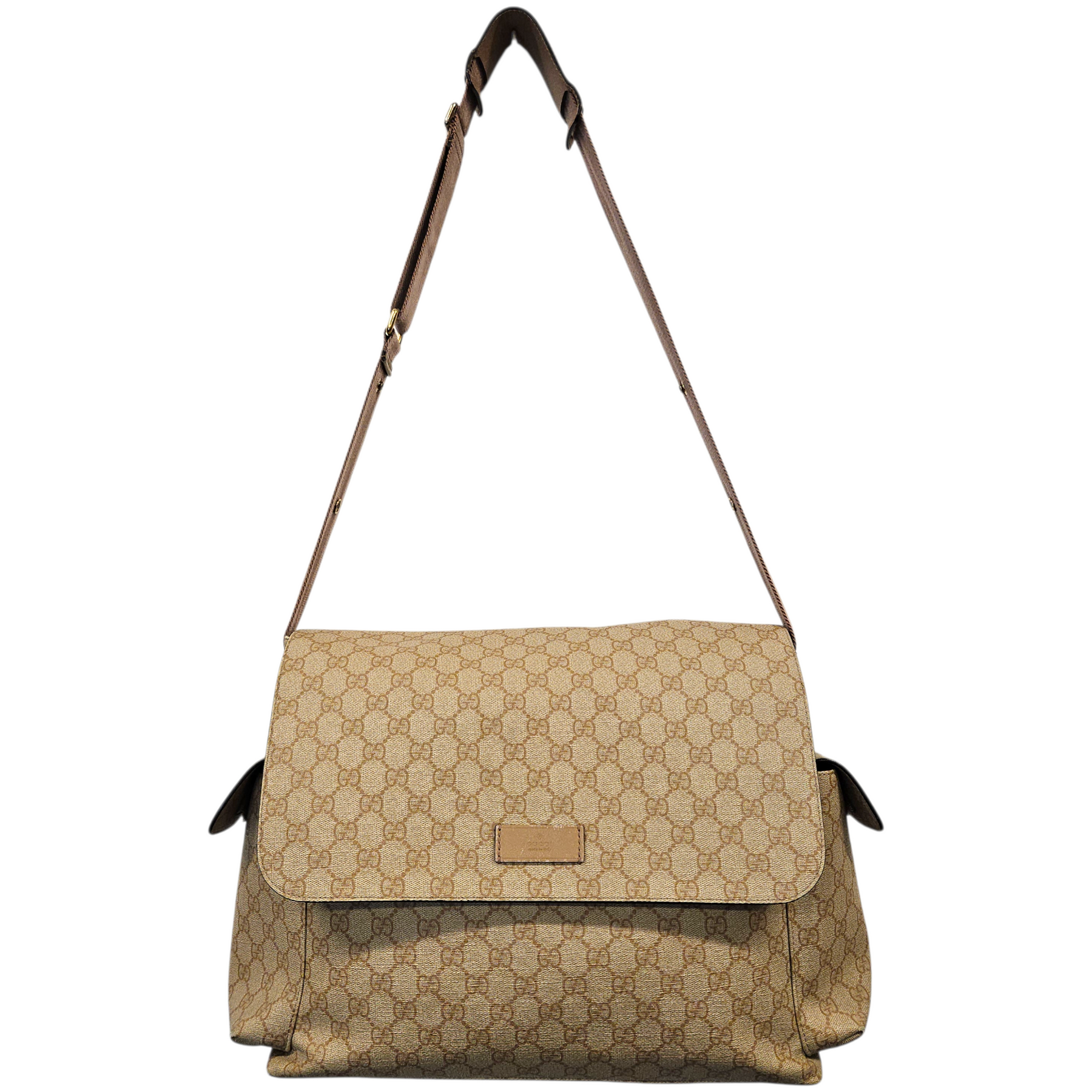 Materials: Beige & brown GG Supreme coated canvas, leather trim, & gold-tone hardware.