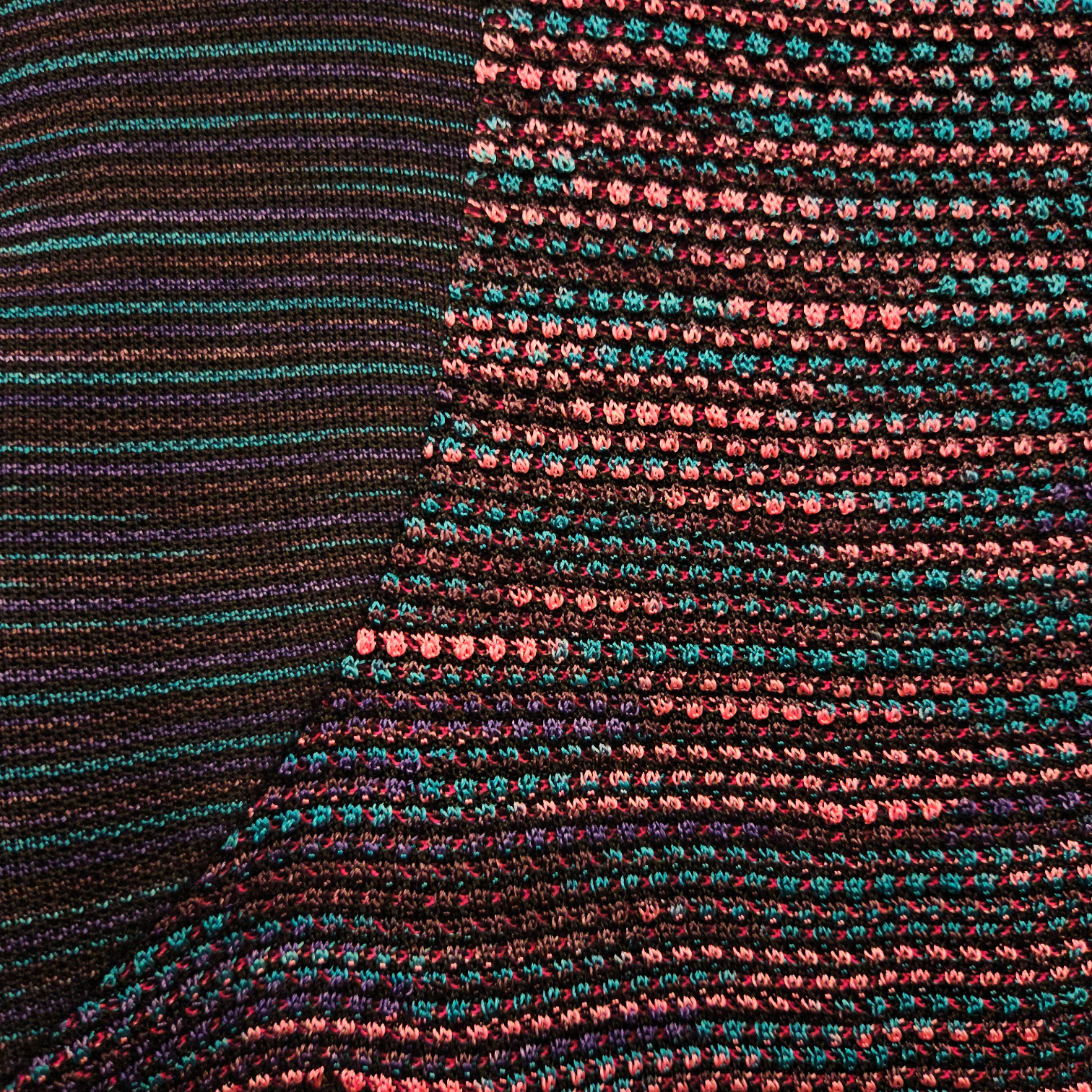 Materials: Black, teal, purple, & pink 66% viscose, 34% polyamide.
