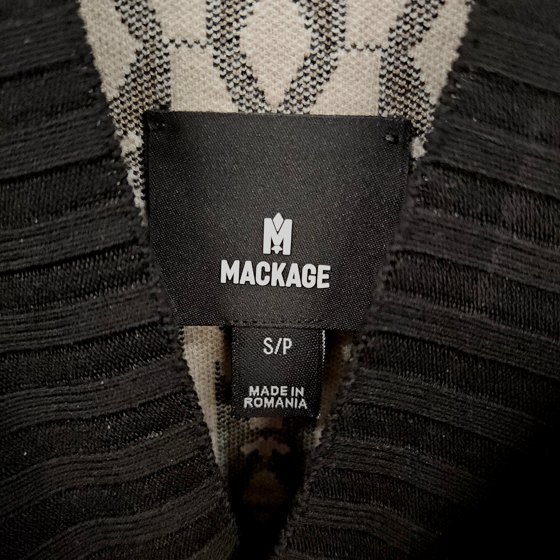 Materials: Black, white, & taupe 70% viscose, 30% polyester.