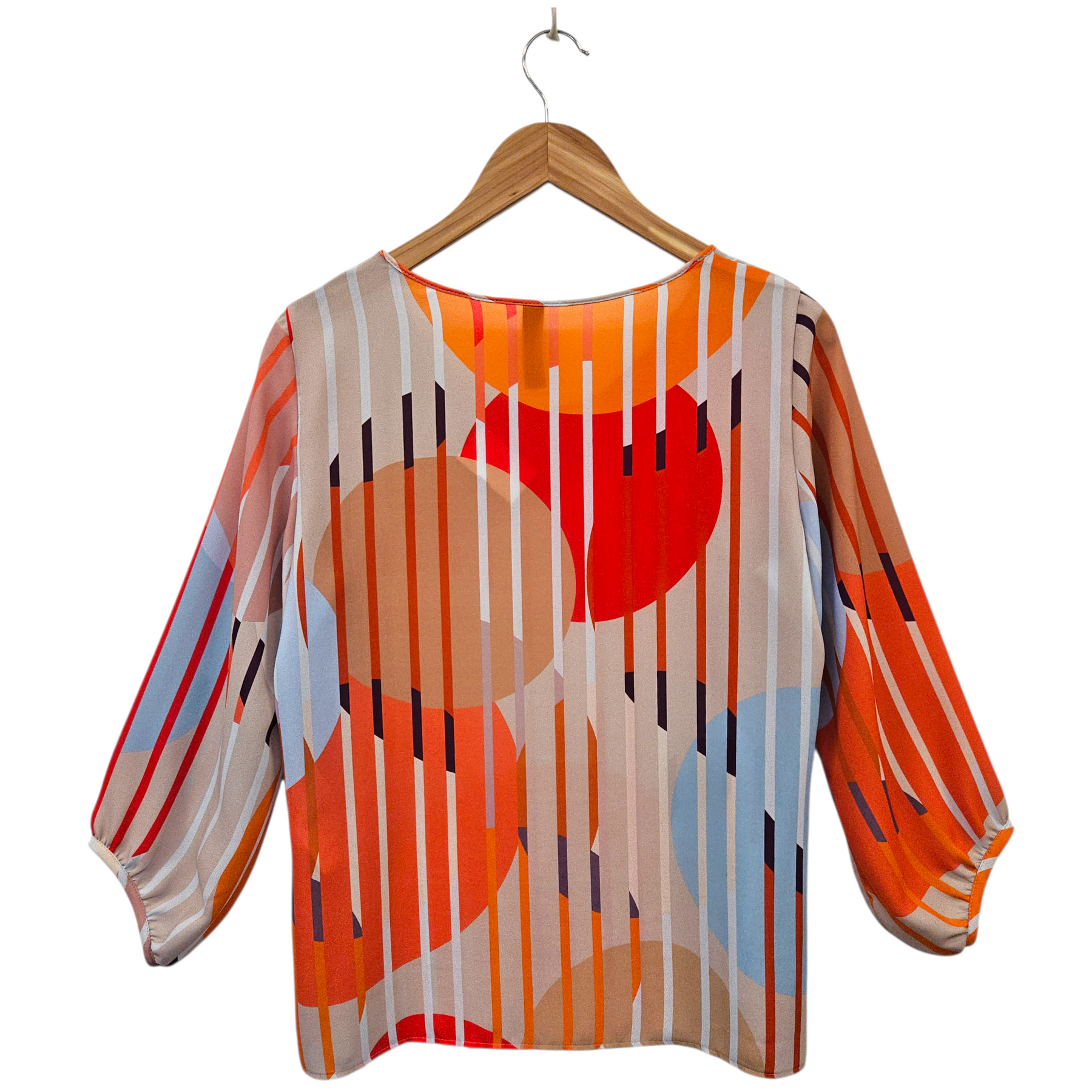 Approximate measurements: 38" bust, 37" waist, 39" bottom hem, 10" armhole drop, 18" sleeves, 3" shoulders, 24.5" total length.