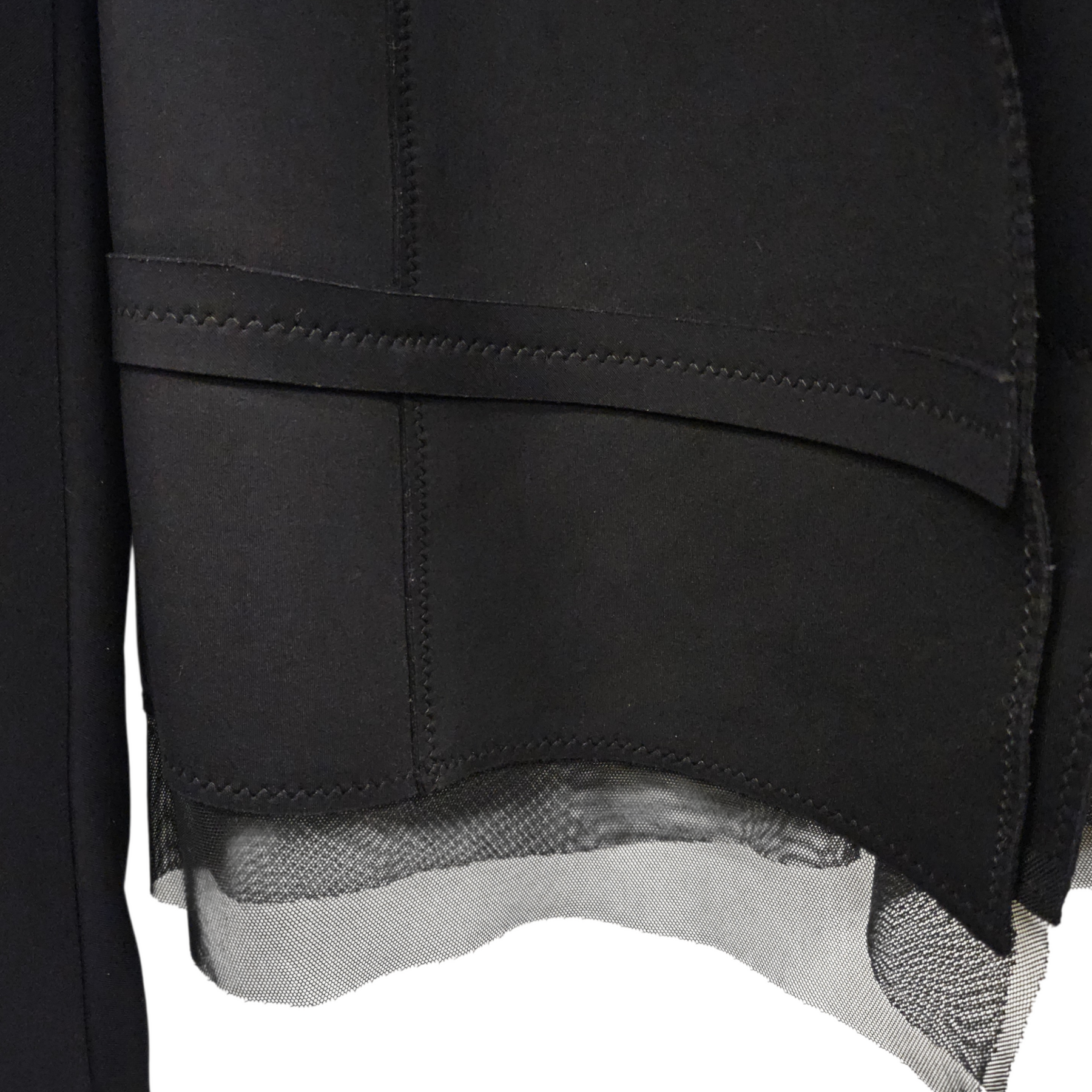 - Mesh trim at bottom hem.