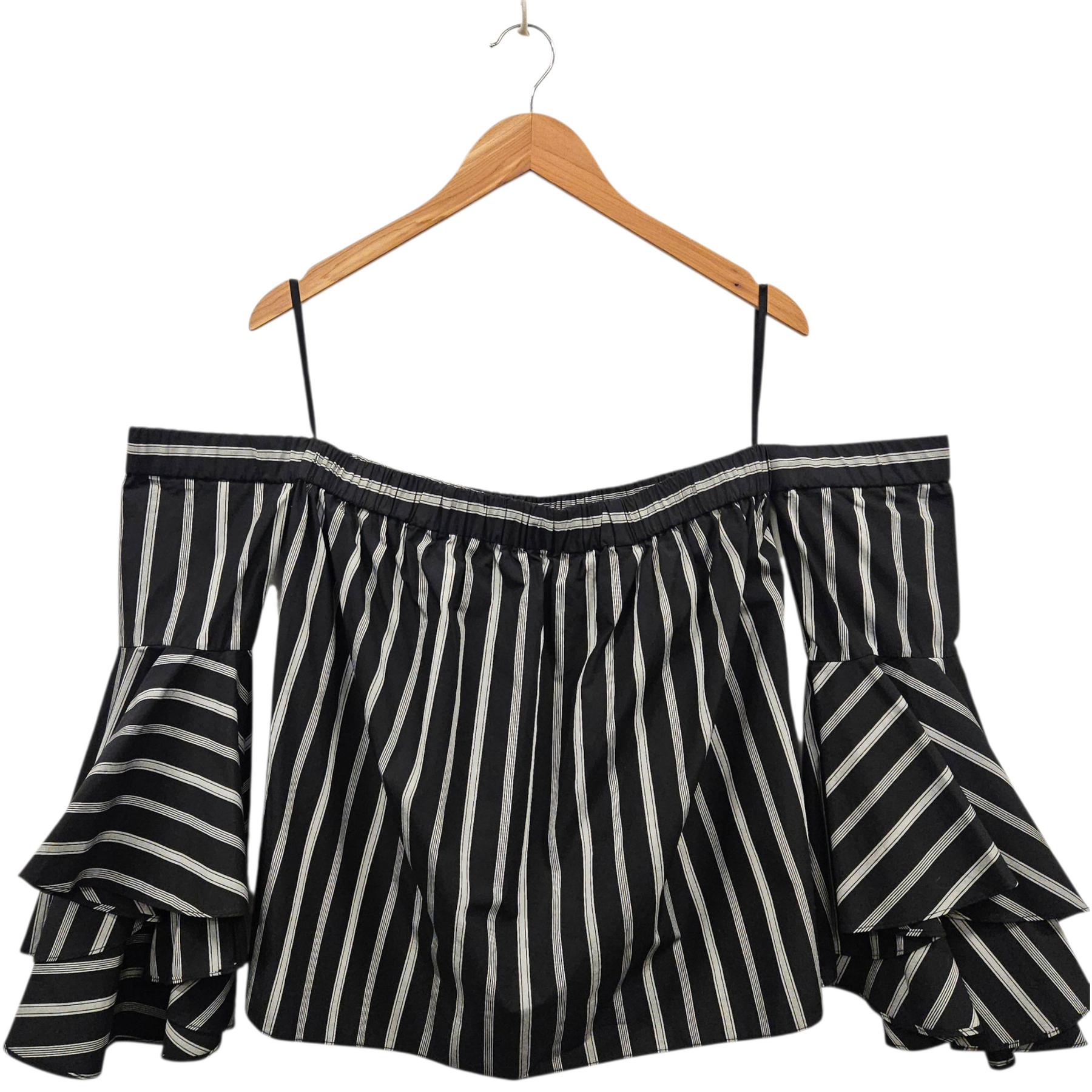 - Off-shoulder bell sleeves.