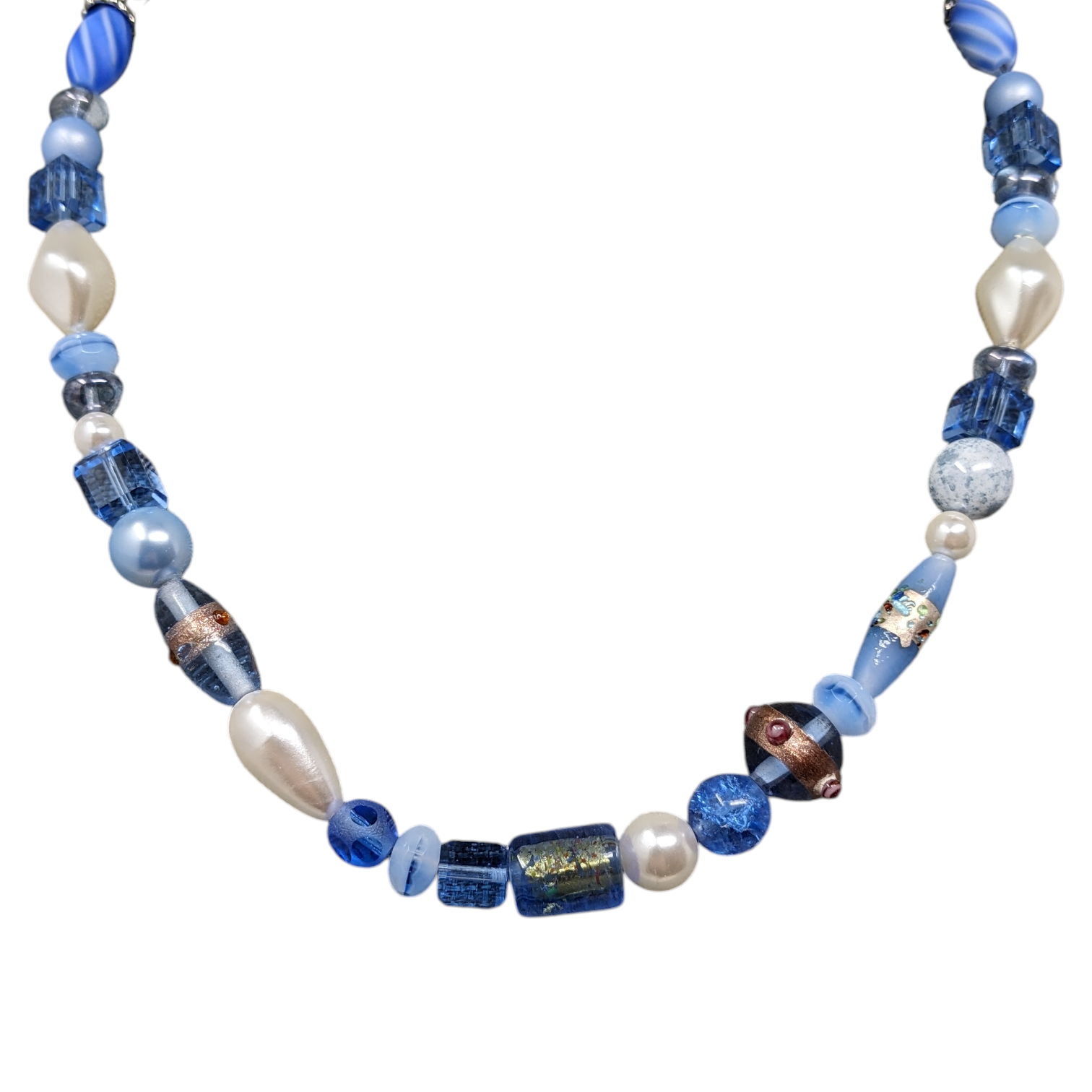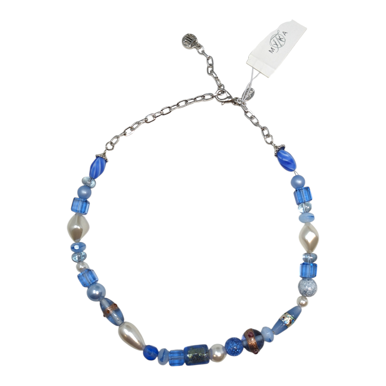 Materials: Blue and white beads made from semi-precious stones, glass and Swarovski crystals.