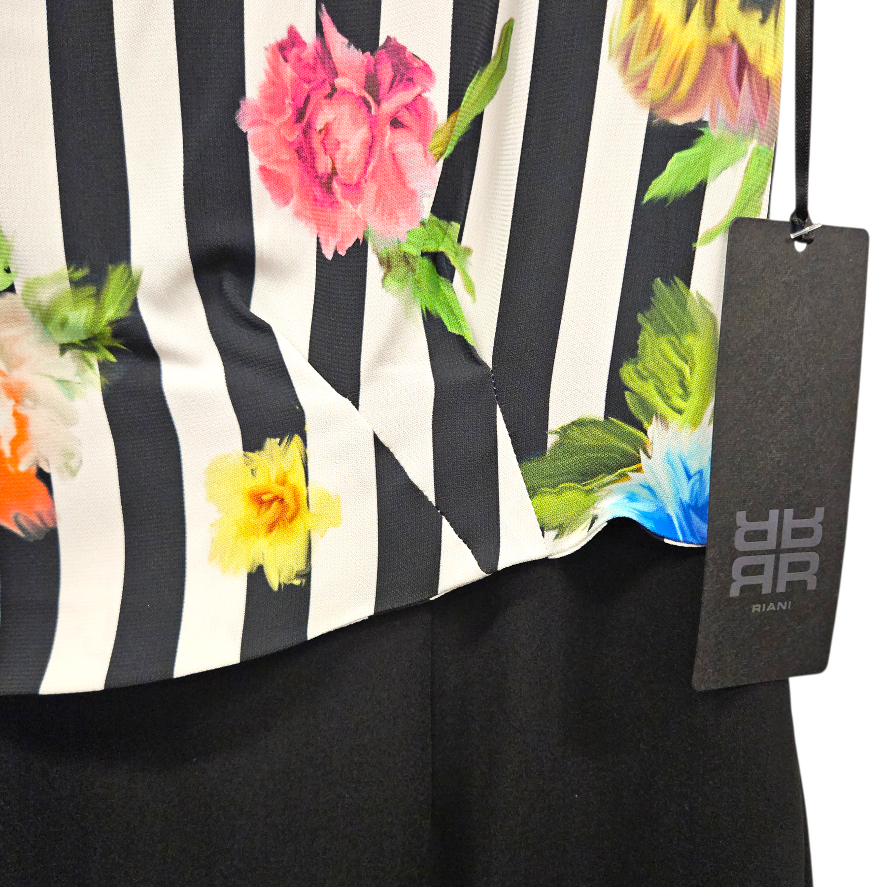 - Top half with stripes & floral print.
