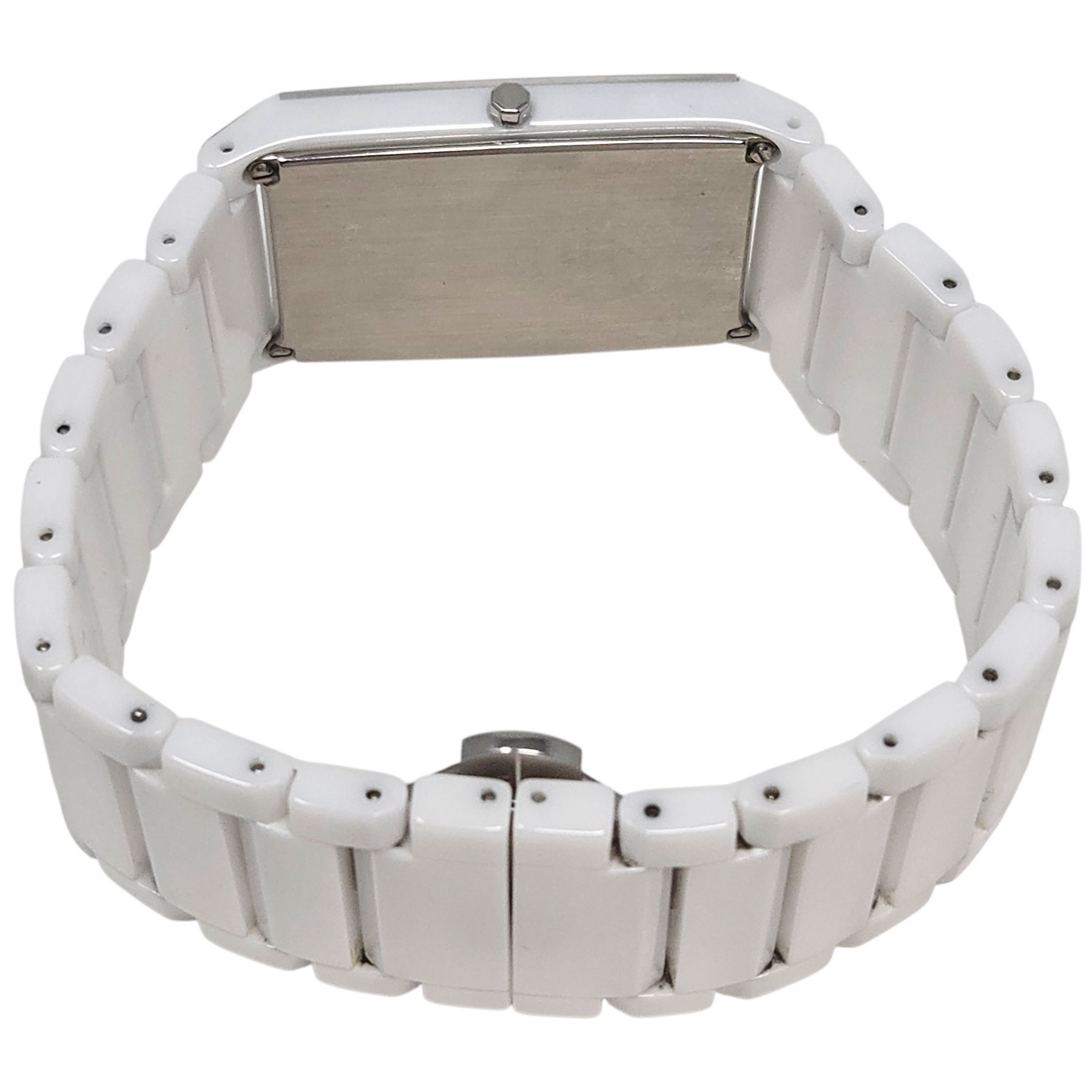 Materials: White ceramic bracelet & case, white face, & silver-tone hardware.
