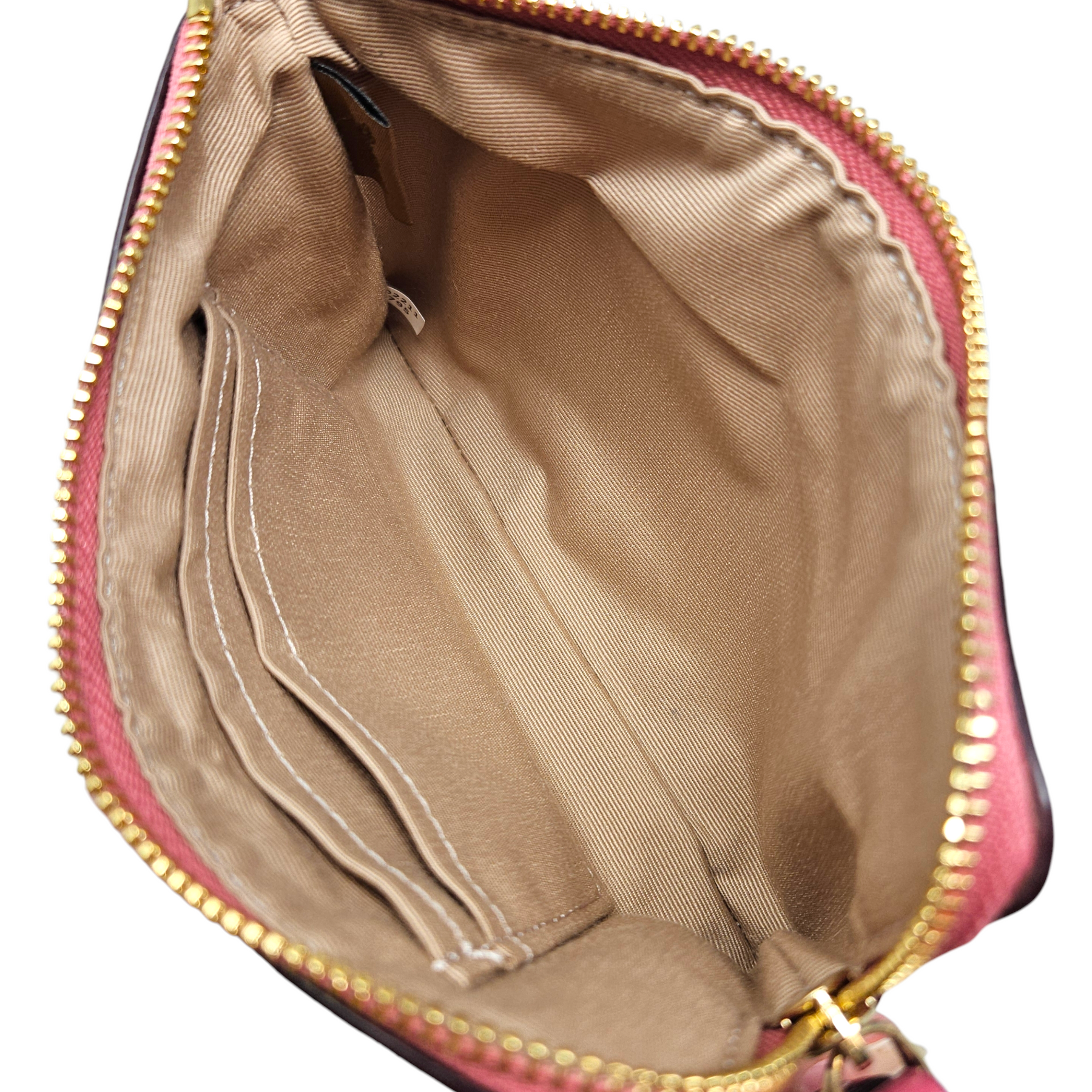 Materials: Beige signature coated canvas with pink hearts, pink leather strap, & gold-tone hadware.