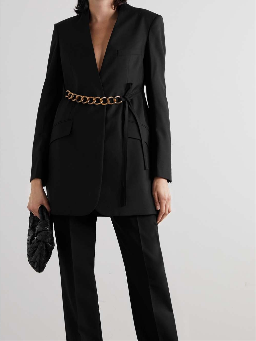 Givenchy Chain-Embellished Wool Wrap Blazer - Size 36=4/6 Small