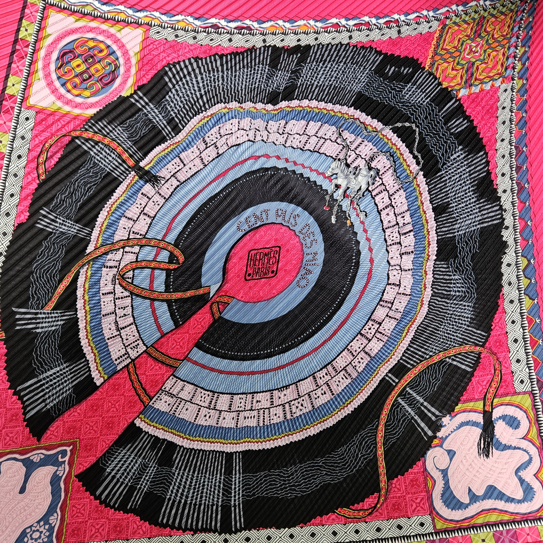 Hermes "Cent Plis Des Miao" silk plisse scarf.