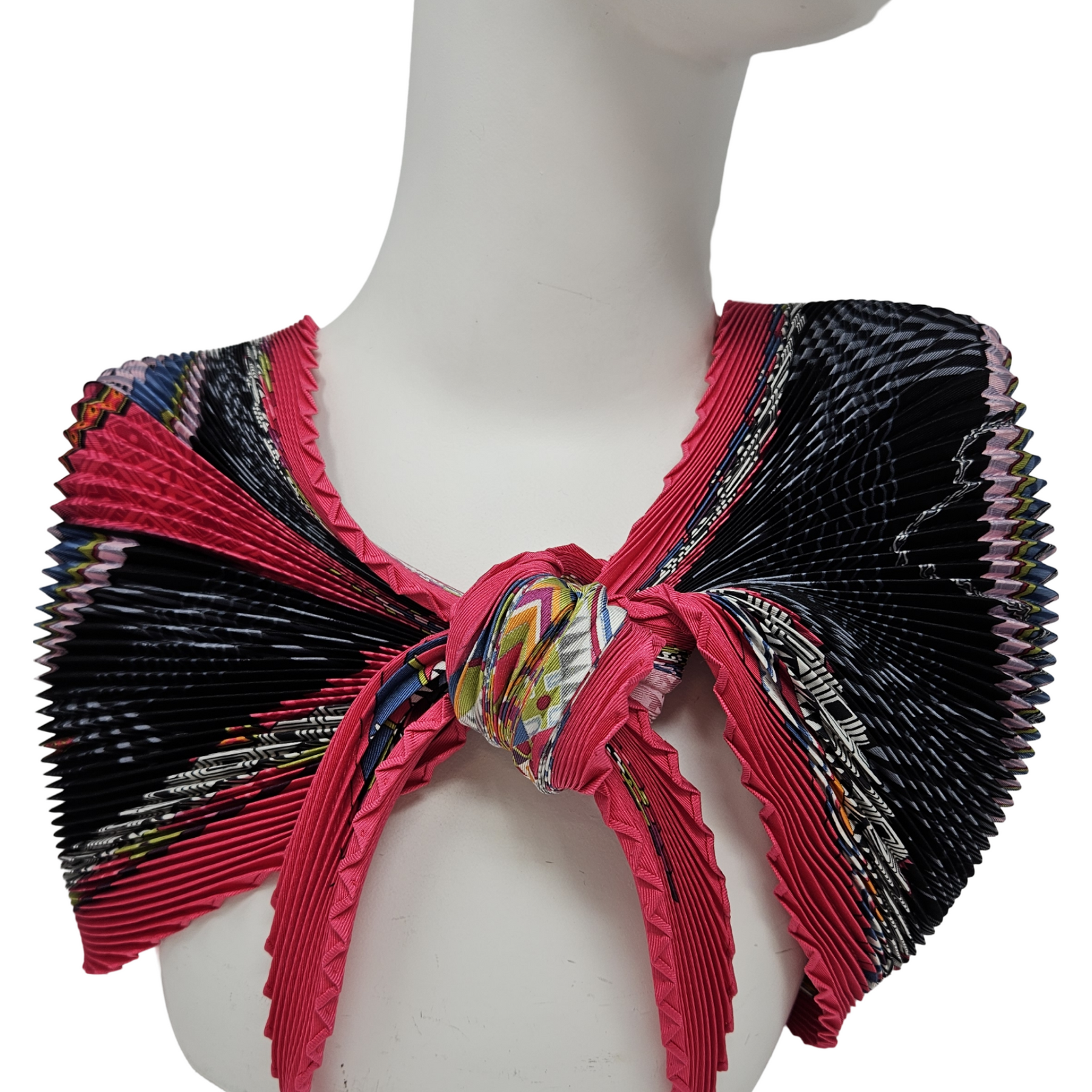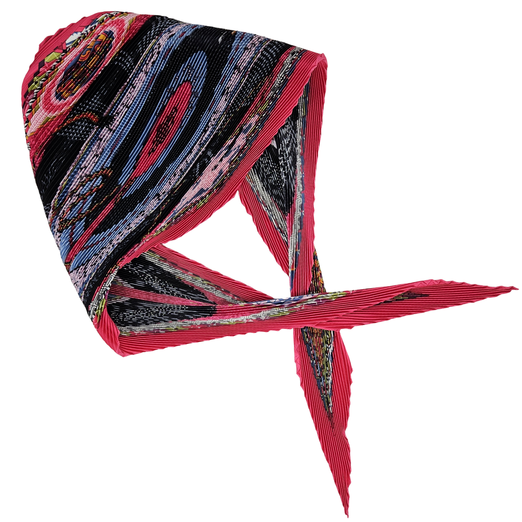 - Pleated square scarf with sewn edges.