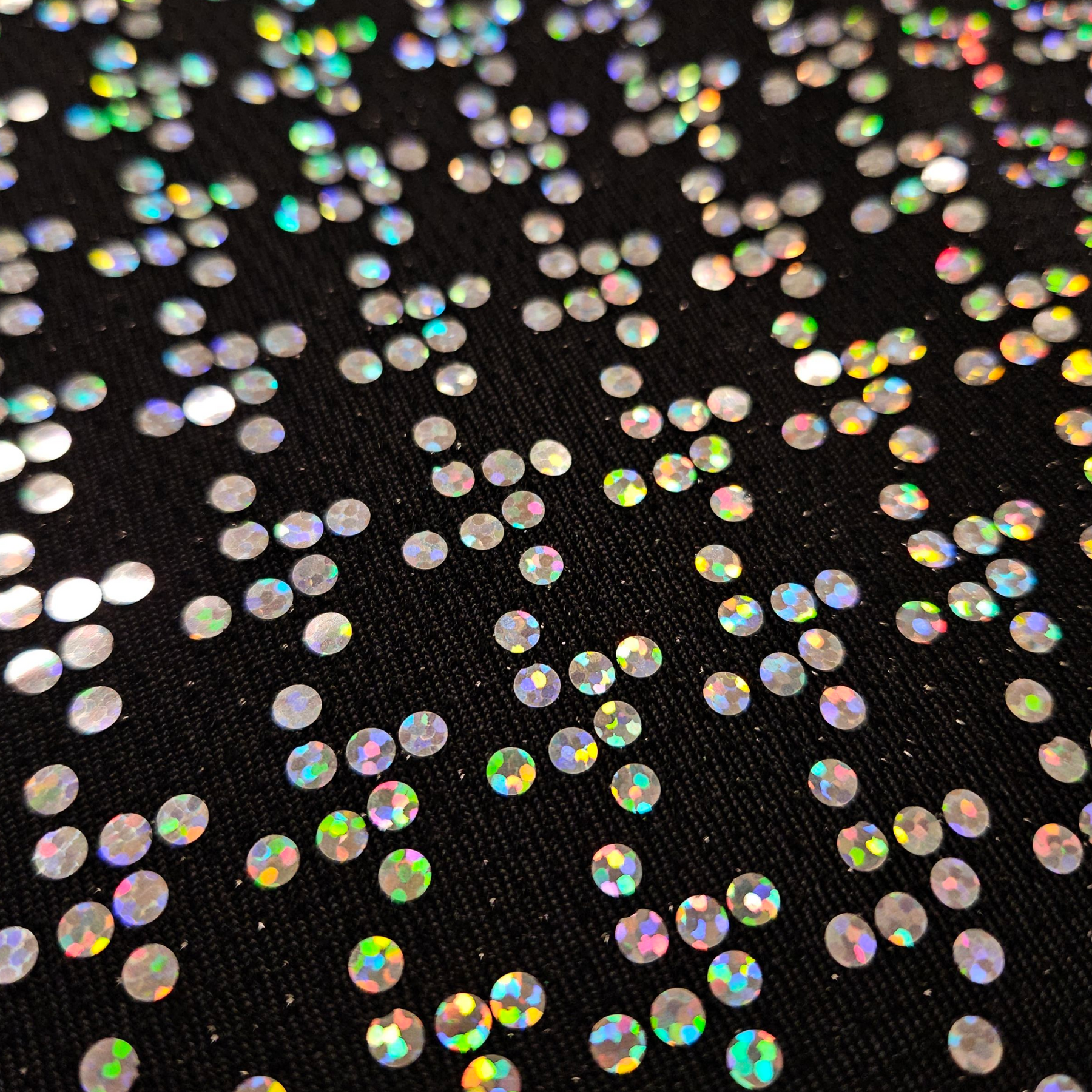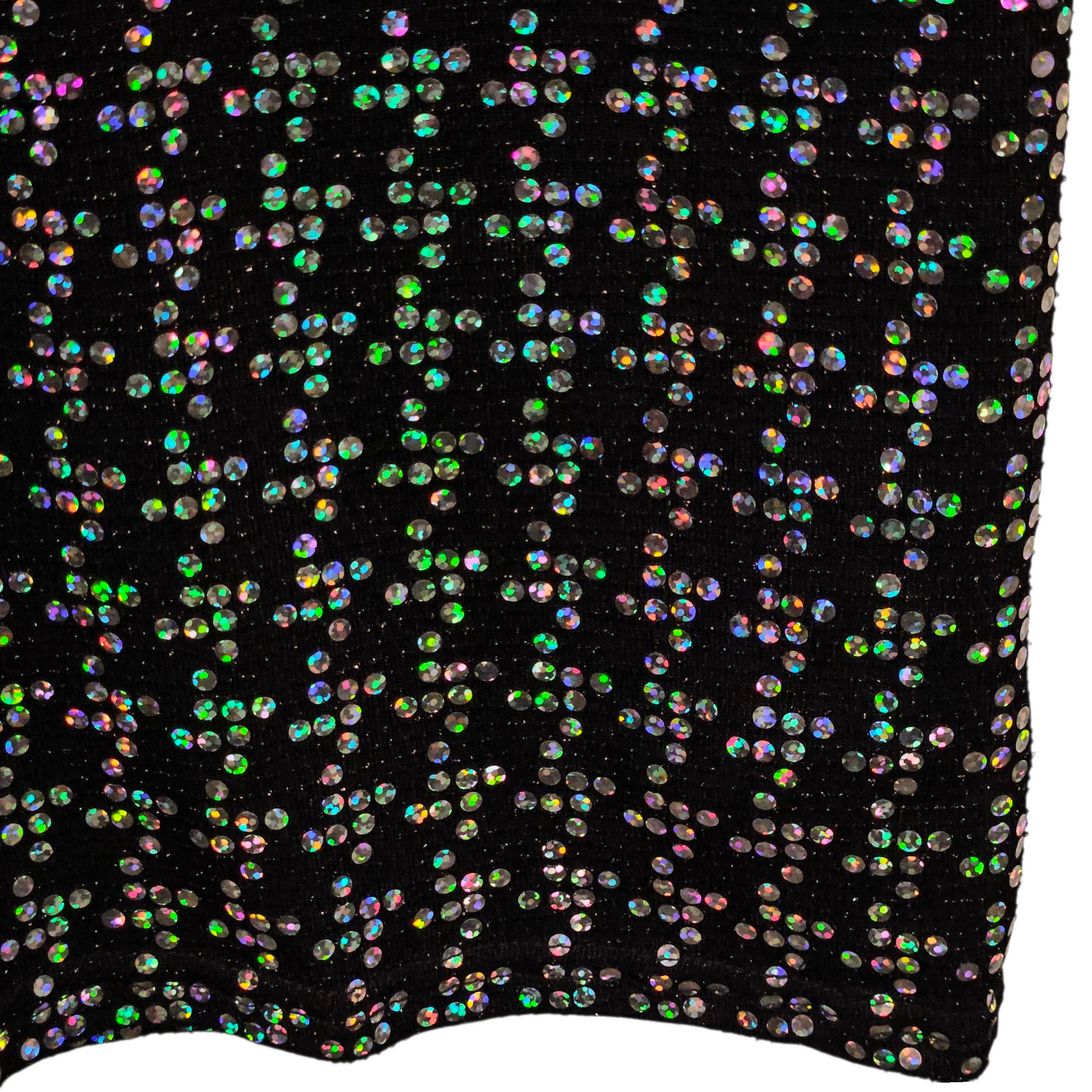 Materials: Black & iridescent 90% nylon, 5% metallic, 5% spandex.