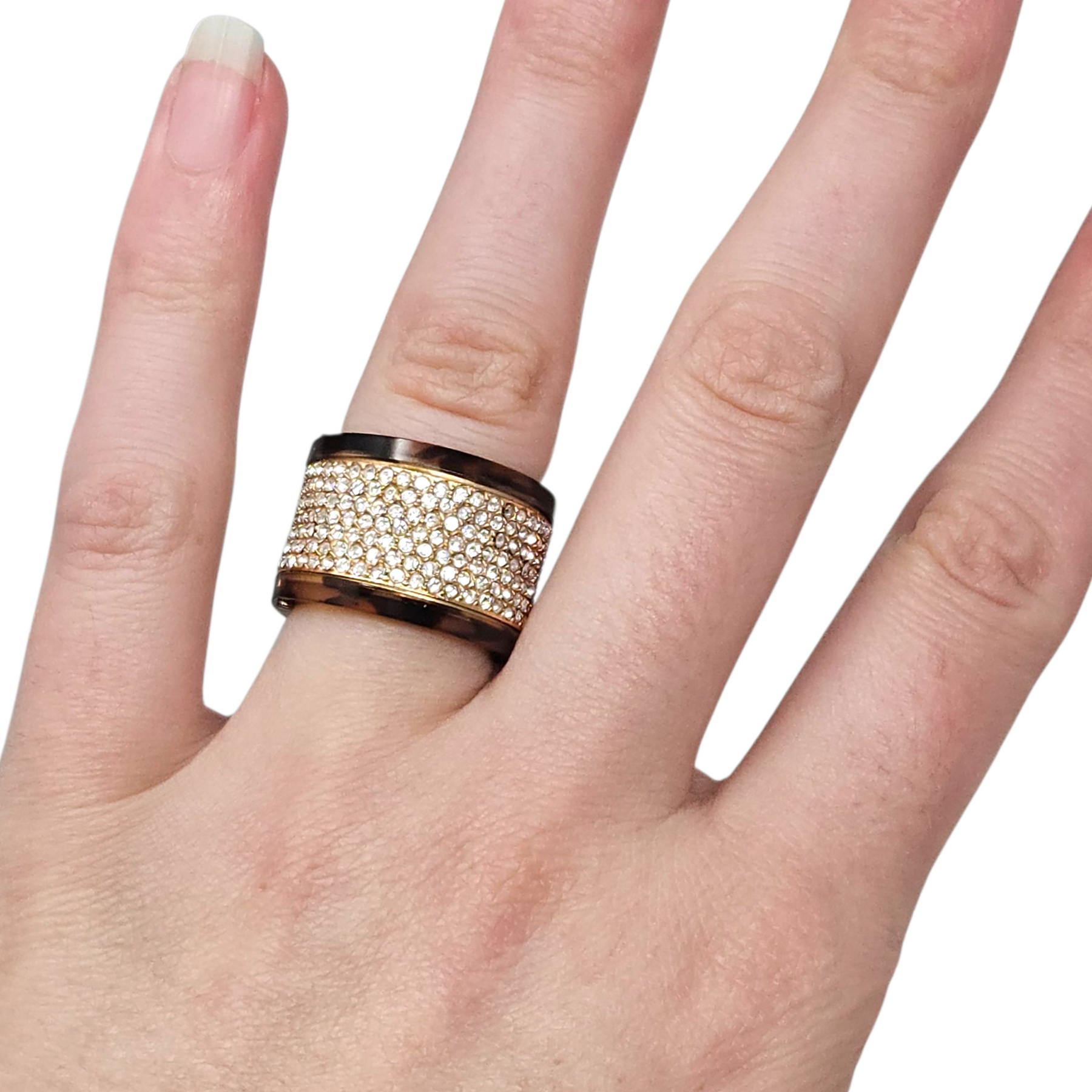Michael Kors Crystal Pavé & Resin Barrel Ring - Size 6.5/7