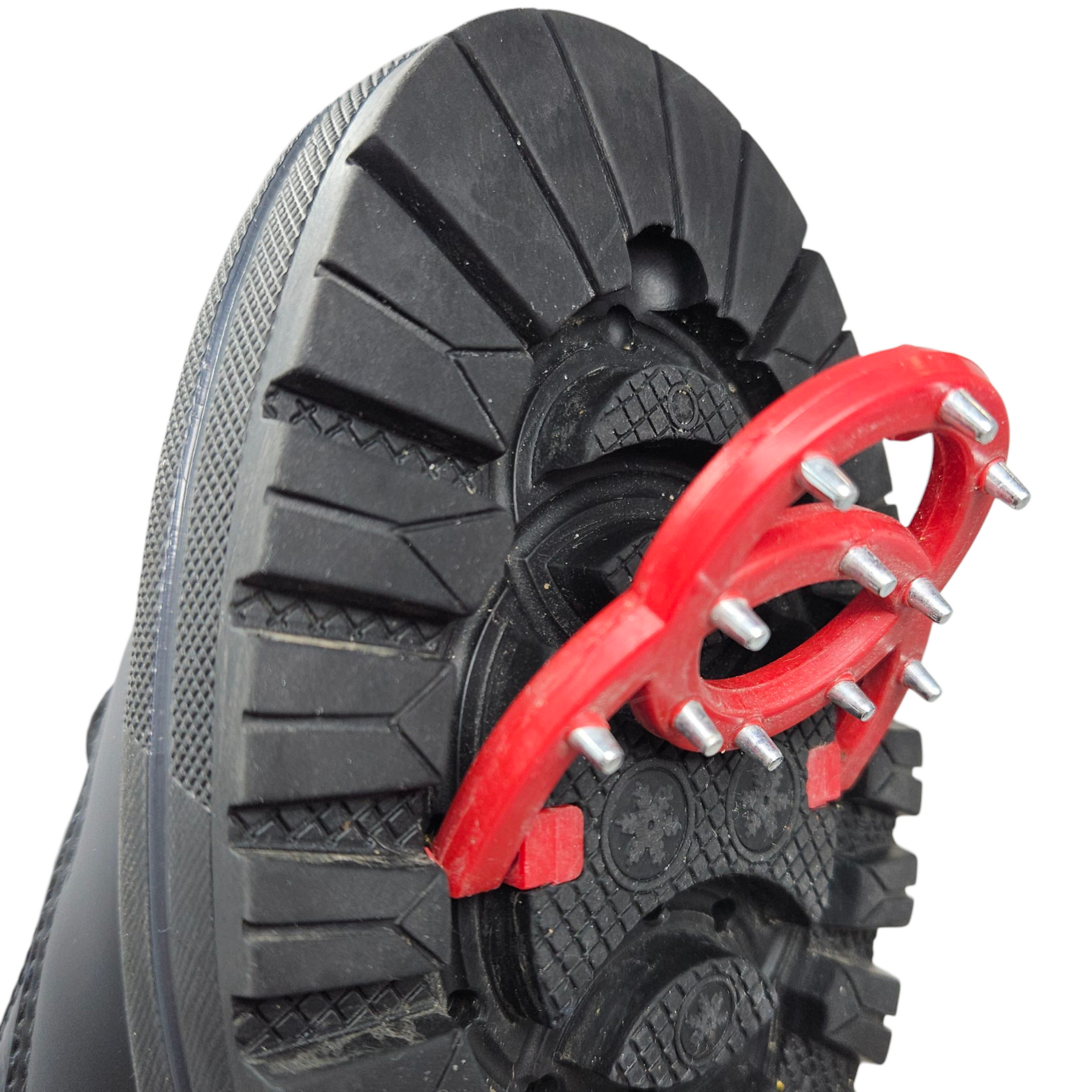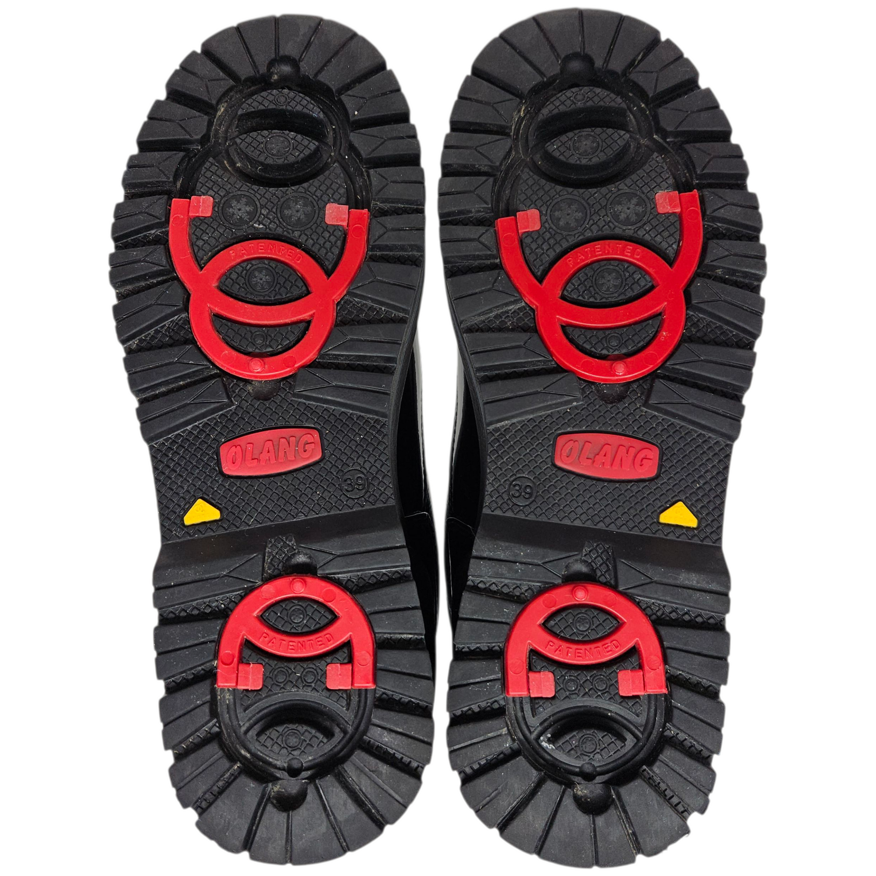 - Rubber tread outsoles with fold-down cleats for extra traction on ice & snow.