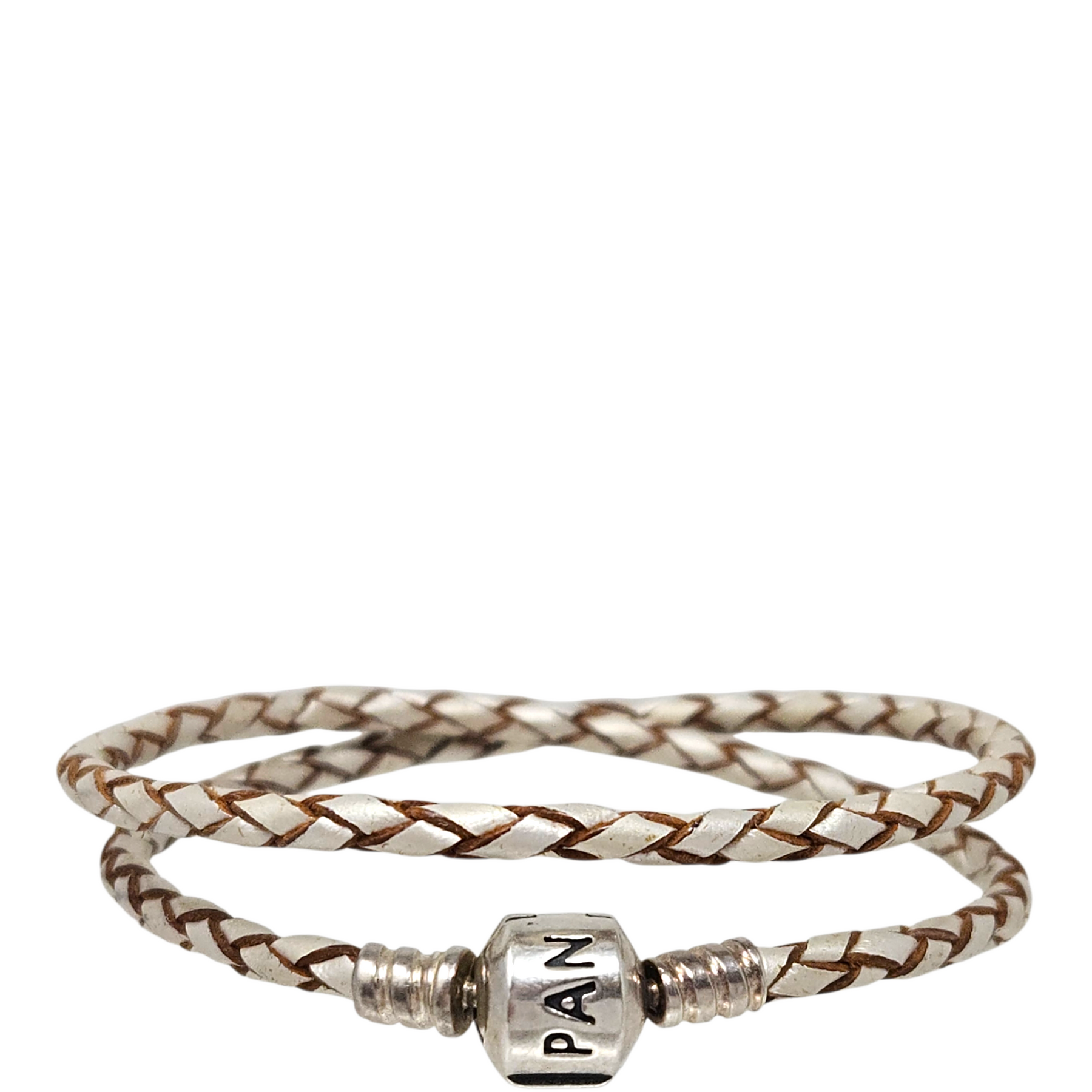 Pandora Woven Leather & Sterling Silver Wrap Bracelet