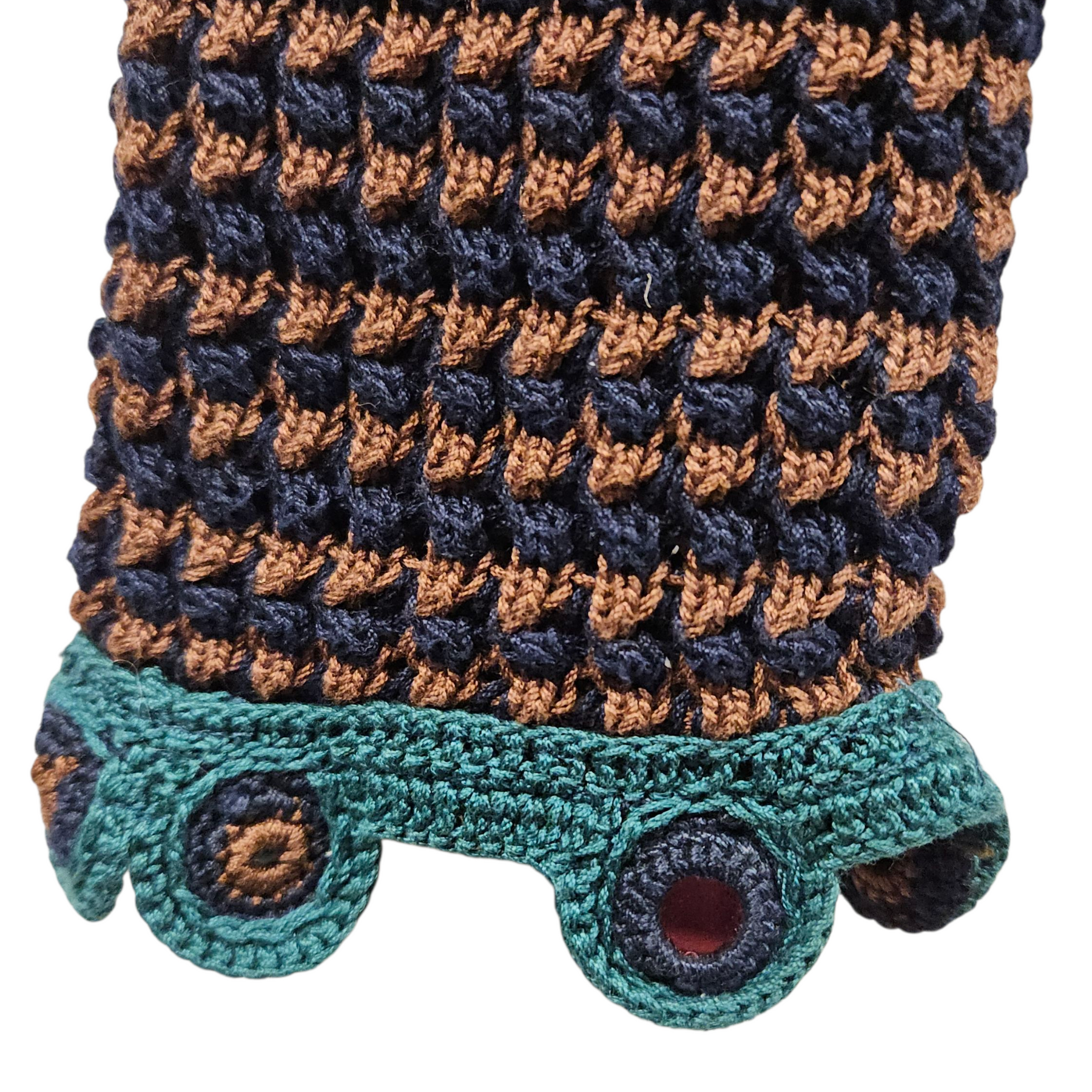 Materials: Navy, brown, pink, & teal 100% cotton.