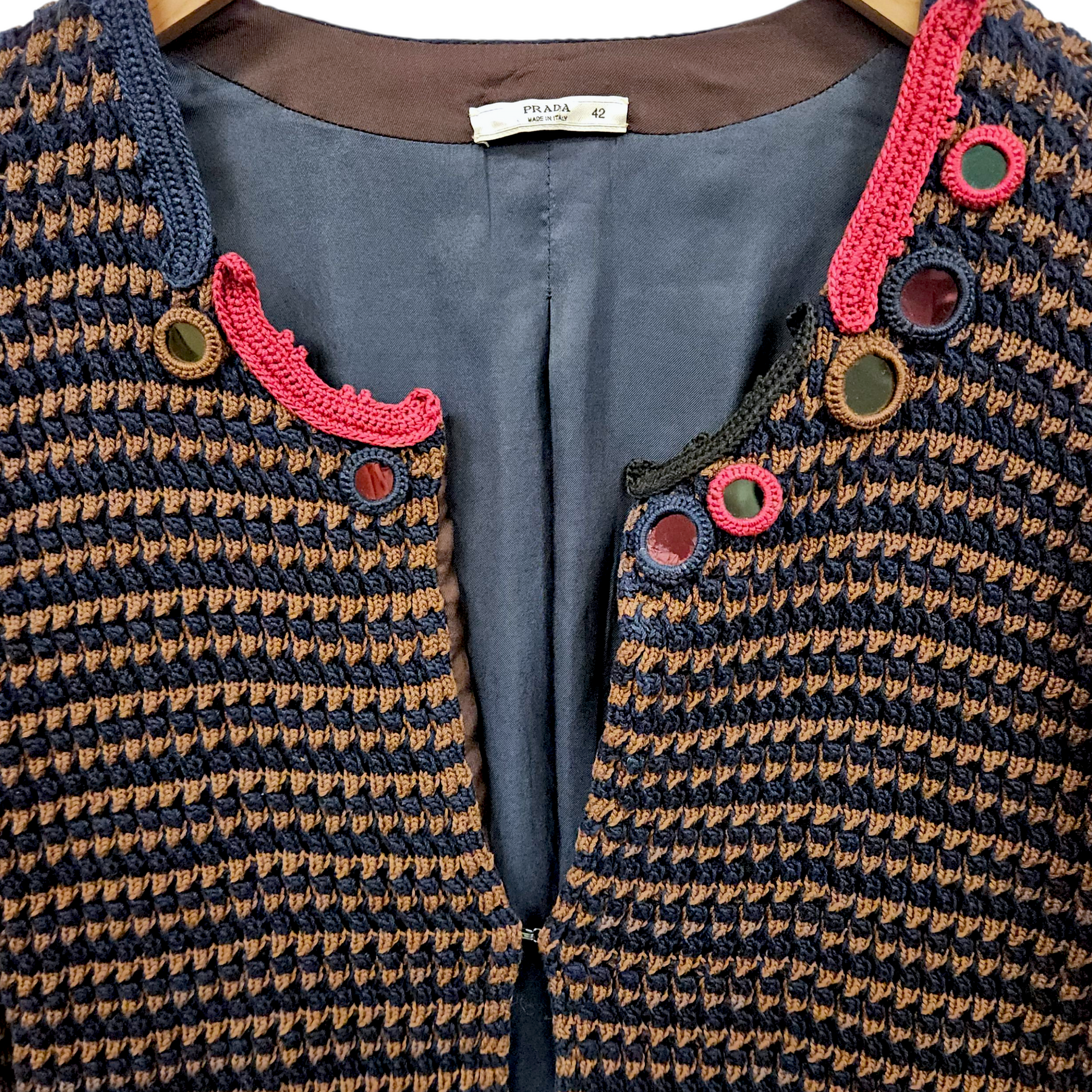 Prada Vintage Crochet-Knit Mirror Jacket - Size 42=6/Small