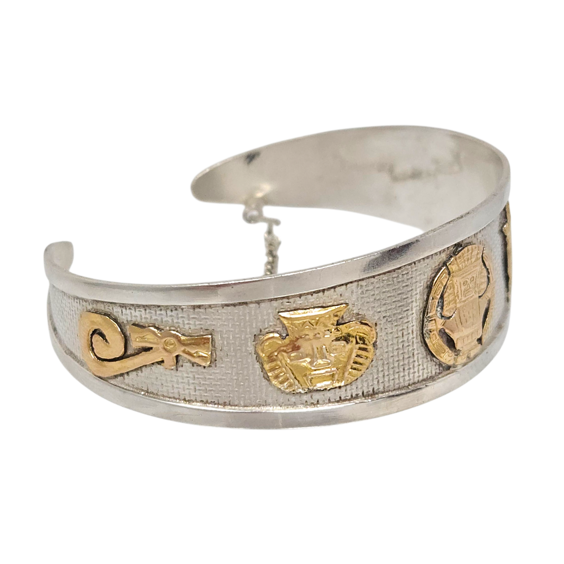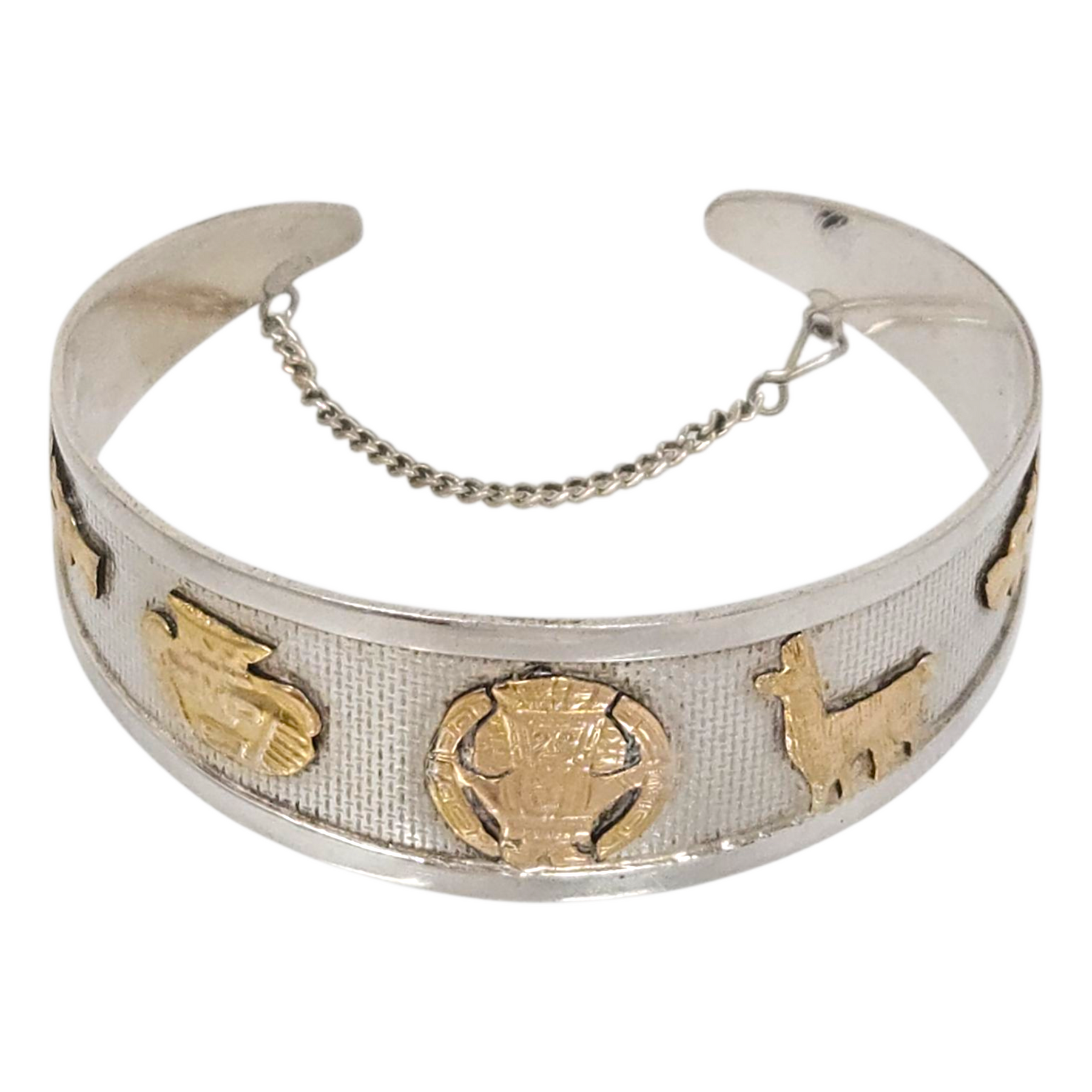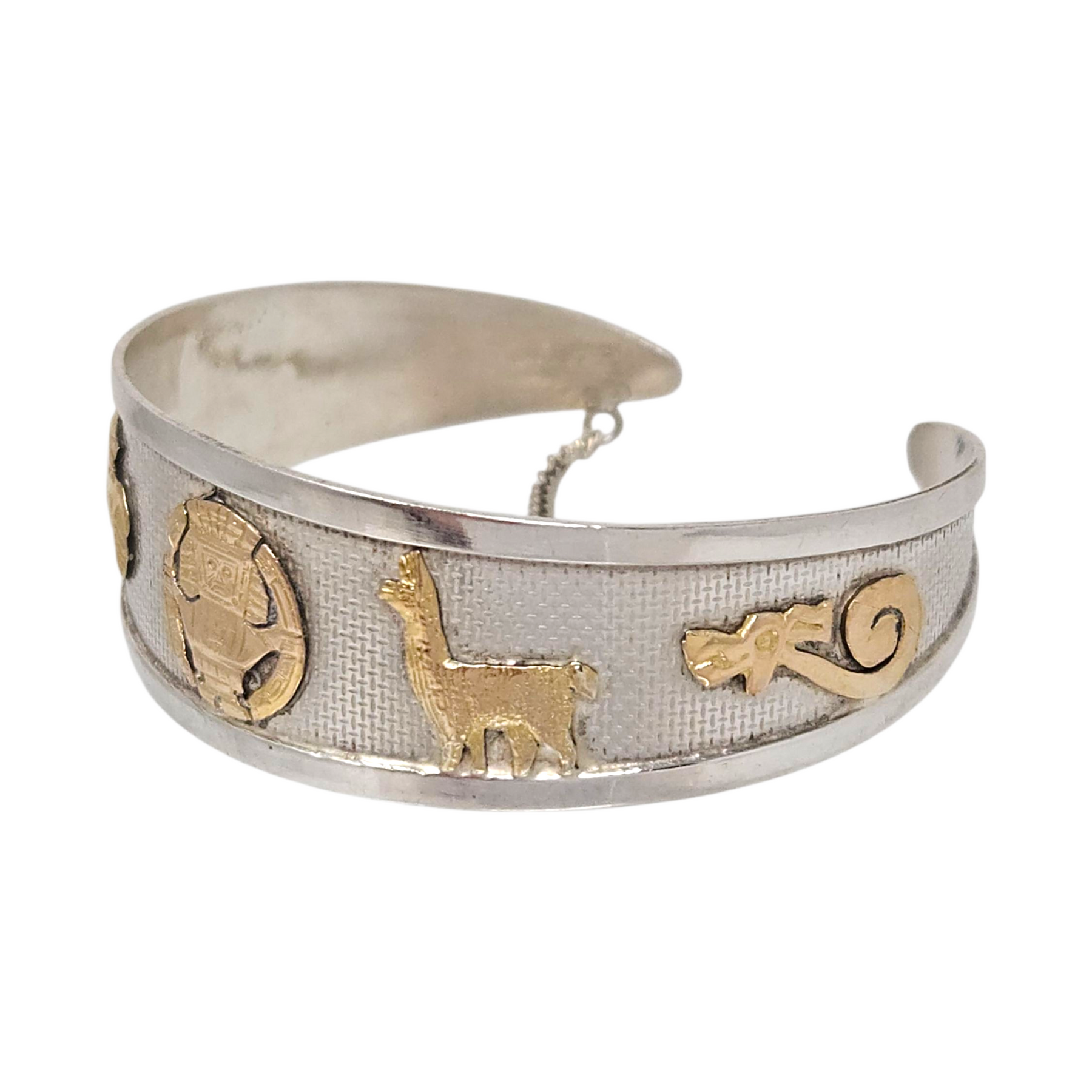 Vintage Sterling Silver & 18K Gold Peruvian Symbol Bracelet.